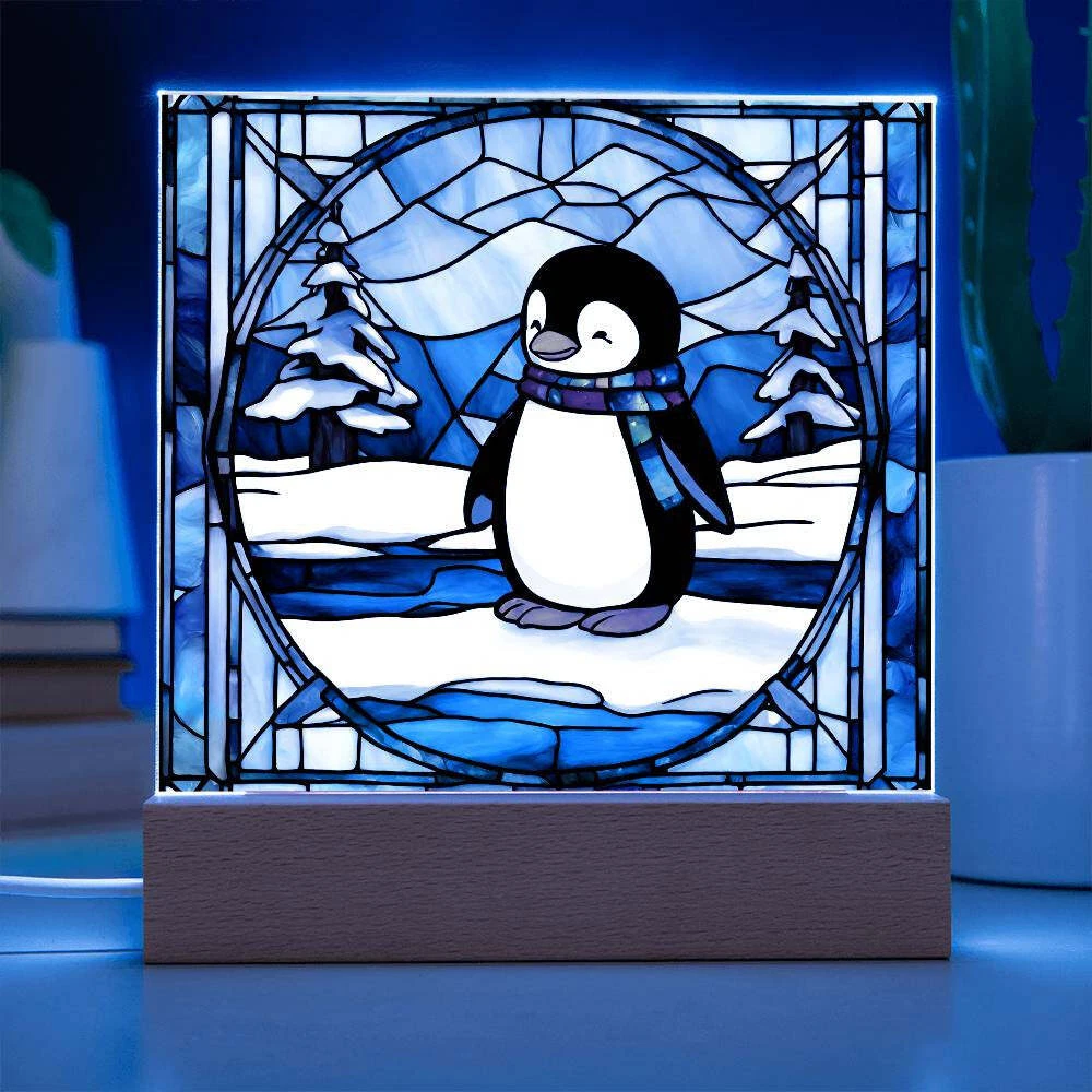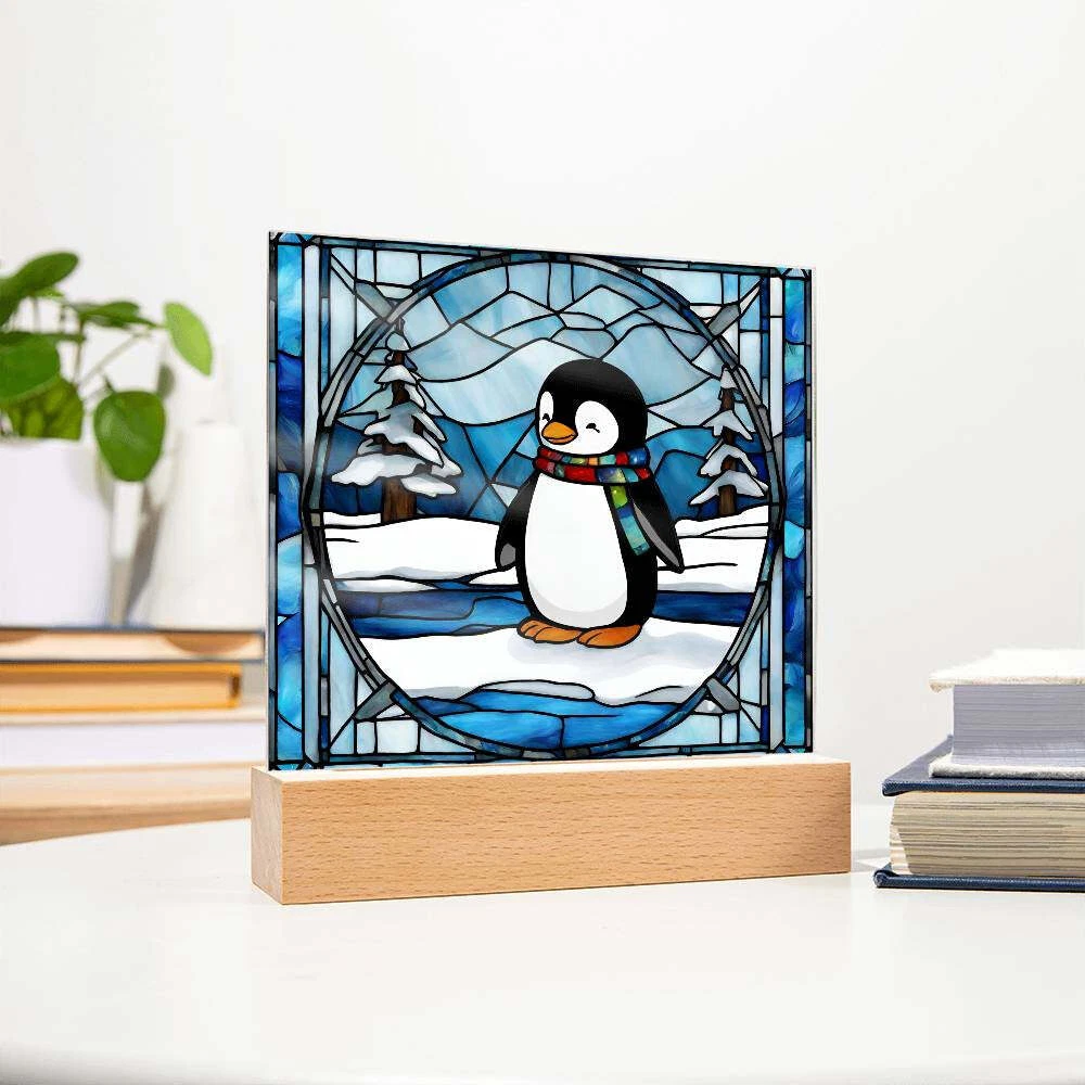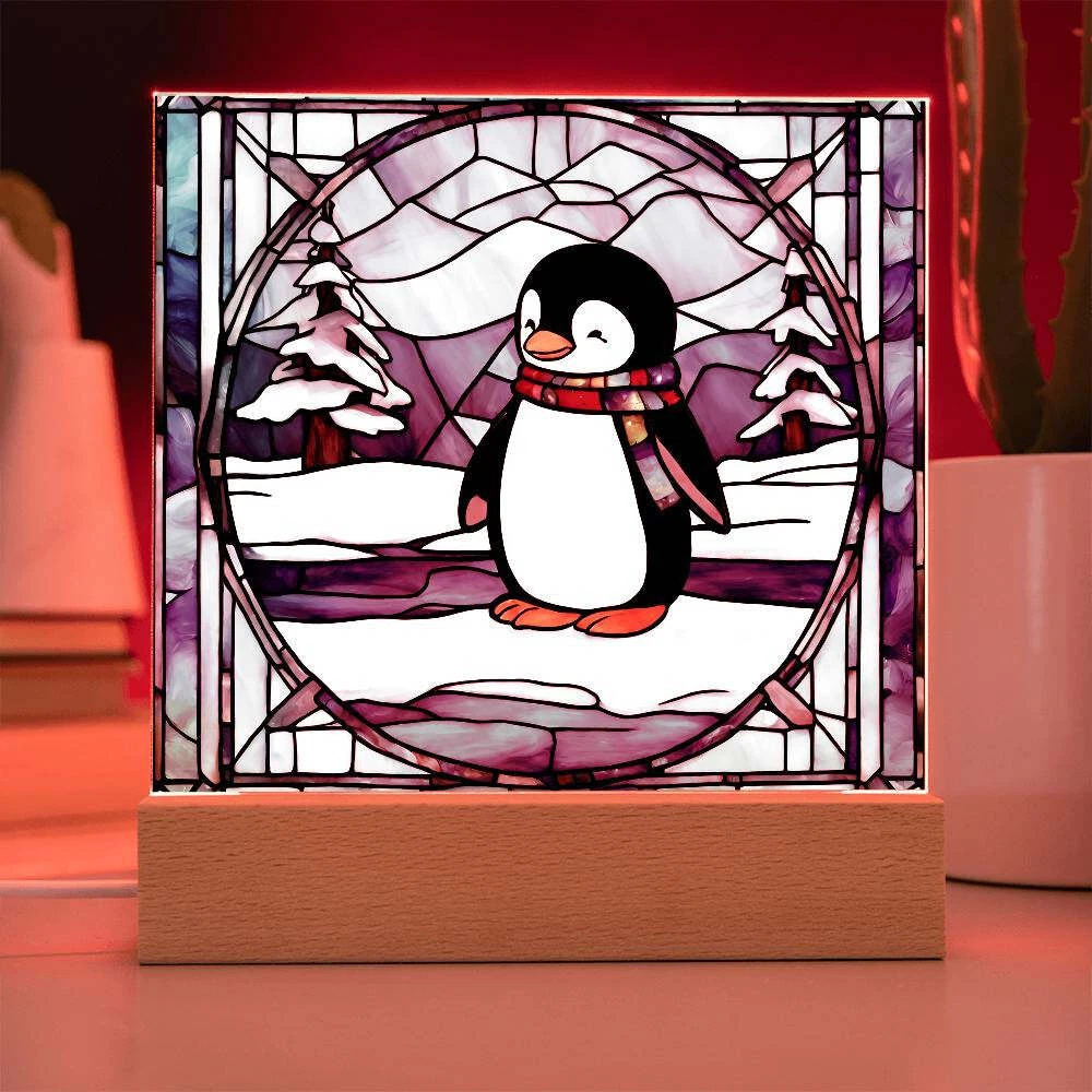 Penguin acrylic faux stained glass plaque. Combine modern technology and a heartfelt message with our Square Acrylic Plaque ! This design is printed on crystal-clear premium acrylic and easily becomes the centerpiece of any room. And the contemporary design wouldn't be complete without its sleek wooden base, elevating the display that will instantly become a conversation starter. Create a memorable presentation when you upgrade to the LED wooden base! This is the ideal present for your beloved partner, family members, or dear friends on special occasions like anniversaries, birthdays, or any occasion where you want to express your love and appreciation in an unforgettable way. Let your loved ones know how much they mean to you by purchasing today! Your plaque will be made from high quality acrylic and will feature a professionally printed design. This present makes for a truly unique and sentimental gift that will be treasured for years to come! Product specifications: Premium acrylic Size with wooden base: 6.5" (165mm) height x 6.5" (165mm) width Acrylic Depth: 0.1" (5mm) Wooden base: 1.2" (30mm) height x 6.5" (165mm) width x 1.8" (45mm) depth (Optional) Wooden base with colorful built-in LED lights Sharp, detailed printed design Each order is lovingly packaged and ready to be cherished for a lifetime!