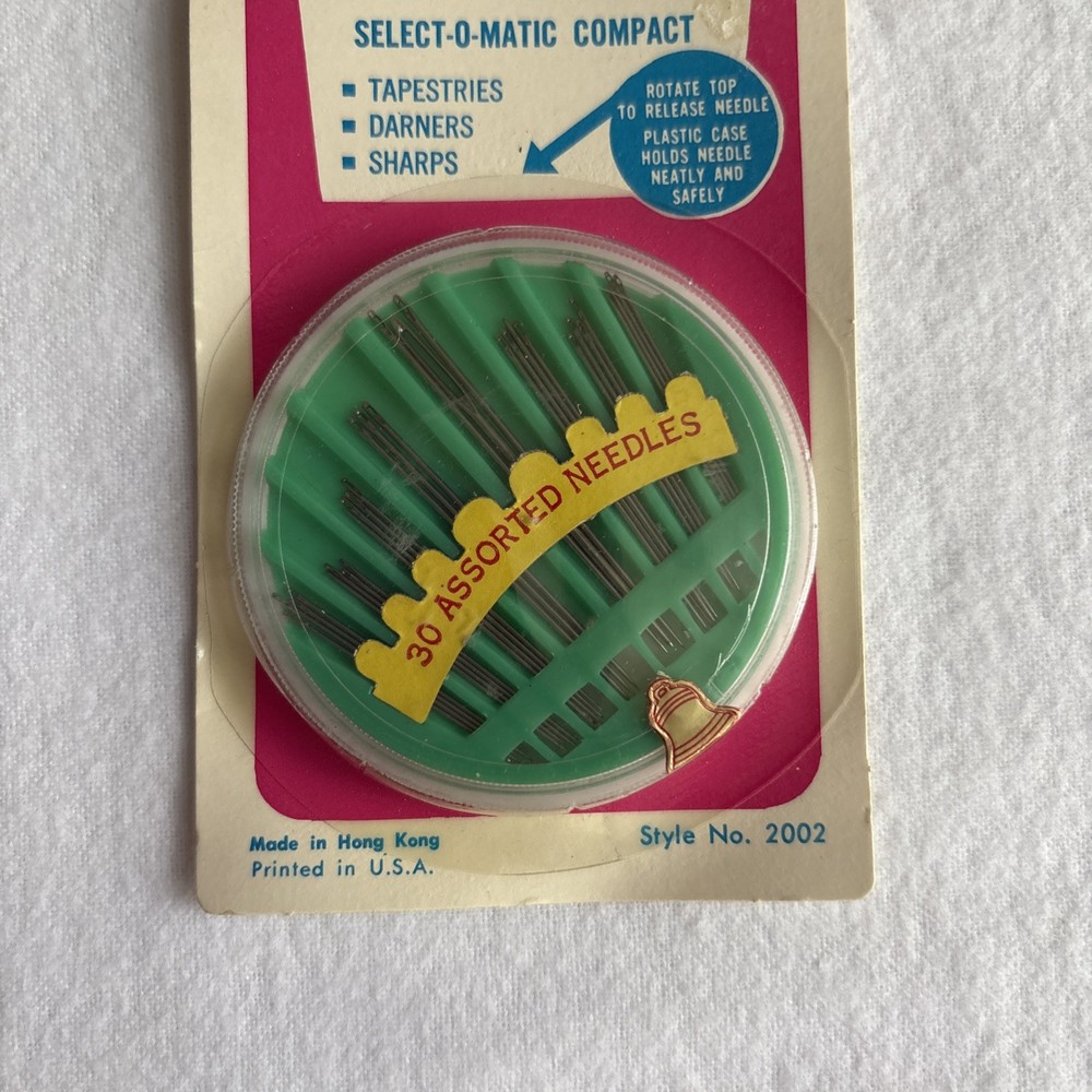 The Penn Assorted Sewing Needles in Select-O-Matic Case is a vintage set of 30 needles, with a mix of eye shape dependent upon needle size/purpose and sharp tip for precise stitching. Made by the trusted brand Penn and manufactured in Hong Kong, these hand sewing needles come in a convenient case for easy storage and organization. Perfect for crafters and seamstresses alike, this collection offers a variety of needles to suit different sewing needs. The unique Select-O-Matic Case allows storage of and easy access to individual needles, making it a practical addition to any sewing kit.