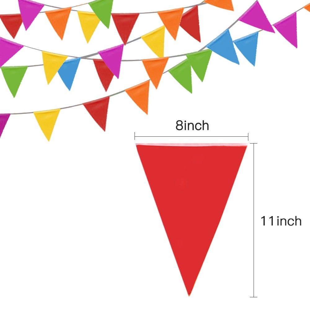 Pennant Banner 75 Multicolor Bunting Flags Party Grand Opening Decorations Description: PARTY MUST-HAVE This pennant banner is a must-have decoration if you're throwing a party. These colorful flags are designed to light up the mood. Hang them up and brighten your party in an instant! FADE RESISTANCE You will immediately notice how vivid the colors are. They are very sharp and vibrant. In addition, the dye has been processed for UV fade resistance, suitable for outdoor use VERSATILE DECOR Birthdays, Halloweens, Christmas or grand opening of your business, no matter what the occasion is, these pennant banners will be able to fit right in along with other decorations! SPECIFICATIONS Each string is approximately 33 feet long with 25 flags, 3 strings per pack, each flag is 7 inch wide and 11 inch long, 5 different colors (red, yellow, blue, pink, green) Features: Party Must-Have - A must-have decoration if you're throwing a party. These colorful flags instantly light up the mood. Hang them up and brighten your party! Fade Resistance- The color is very sharp and vibrant. In addition, the dye has been processed for uv fade resistance, suitable for outdoor use. Versatile Decor - Birthdays, Halloweens, Christmas or grand opening of your business, these pennant banner flags will fit any occasion. Specifications - Each string is approximately 33 feet long with 25 flags, 3 strings per pack, each flag is 7 inches wide and 11 inches long, 5 different colors (red, yellow, blue, pink, green). SHIPPING We are always working hard to ensure your package arrives as soon as possible. Please understand that some factors like weather, high postal traffic, and the performance of shipping companies are outside of our control. We offer free shipping to the lower 48 states and ship within 3 business days of payment, usually sooner. We do not accept P.O. Boxes. Please provide a physical address.
