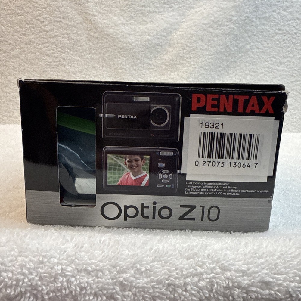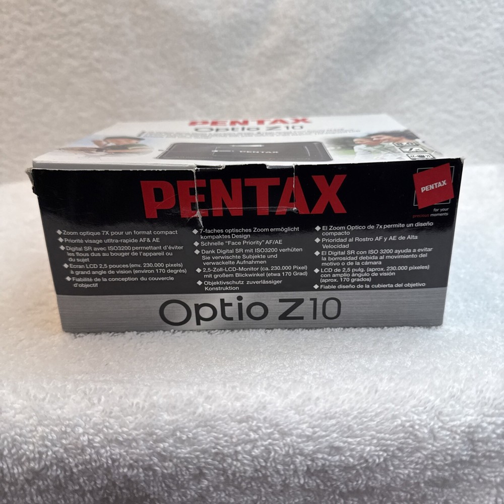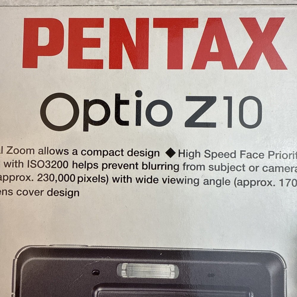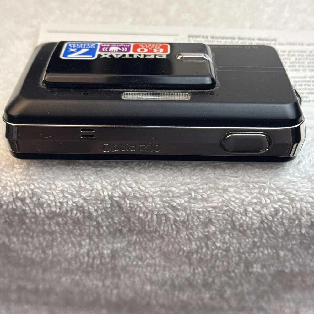Digital Zoom: 7x Model: Pentax Optio Z10 Brand: PENTAX Color: Black Battery Type: Lithium-Ion Maximum Resolution: 8.0 MP Optical Zoom: 7x Series: Pentax Optio Type: Ultra-Compact