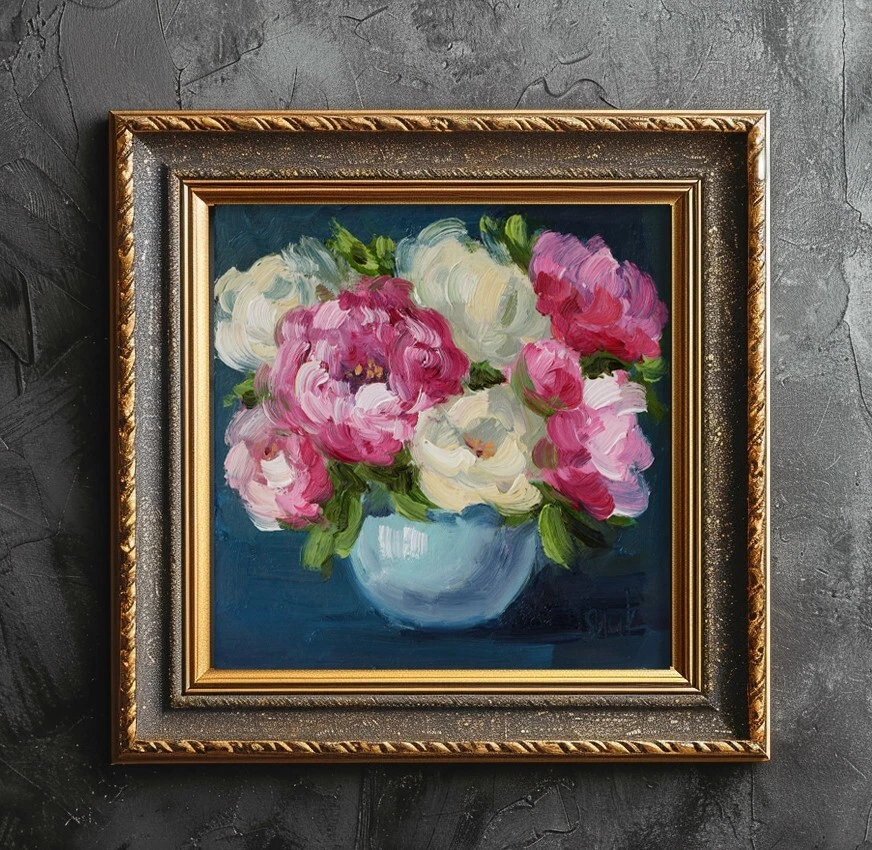 Peony Painting Abstract Flowers in Vase Original Wall Art House Decor Oil Painting Gift for Wife Wall Art 8x8'' Peony is an original oil painting. This is not a copy or print or reproduction. Just my art, directly from the artist - Nataly Mak. 🌈 Without frame 🌈 Materials: oil paints, cardboard ⭐ YEAR: 2024 ⭐ Size: 8x8 inches ⭐ I can draw a different size picture. Just contact me ⭐ On the front and back sides of wall art - the author's signature. Please note, that colors shown may vary from monitor to monitor, but I guarantee that the colors are vibrant. Open for commission ♥ Thanks for shopping and feel free to message me with any questions! I look forward to working with you! I ship with registered mail and you will get a tracking number. Thank you for your visit! Best Wishes, Nataly Mak