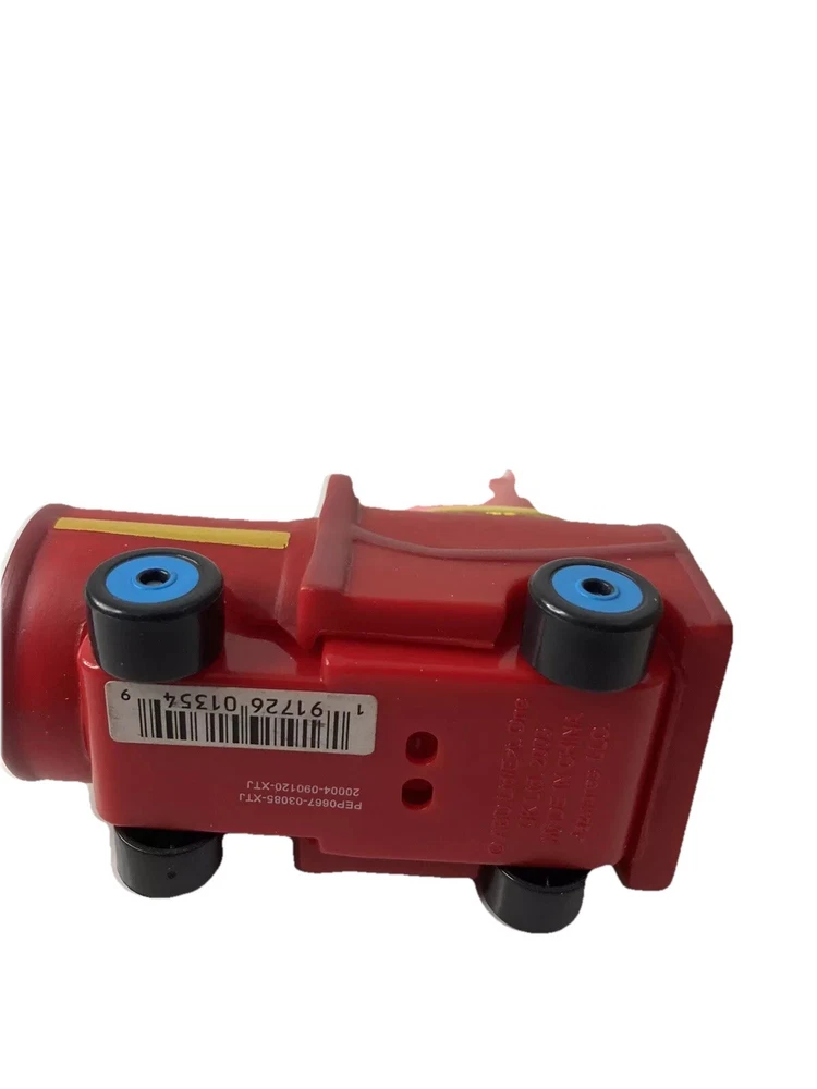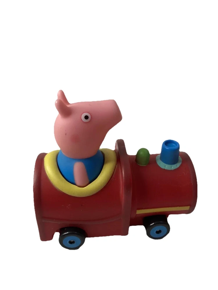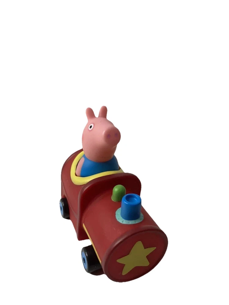 This Peppa Pig Mini Buggy features George Pig in a red train car, perfect for young fans of the Peppa Pig TV show and franchise. Made of durable plastic, this 3.5" scale train car was manufactured in 2003 and is a vintage original Jazwares product. It is suitable for children aged 3-4 years and comes from China. Not only is it a great addition to any Peppa Pig or action figure collection, but it also serves as a fun toy for imaginative play. The train car is part of the Peppa Pig Mini Buggies series and is licensed by the franchise. Get your hands on this George Pig train car action figure today!