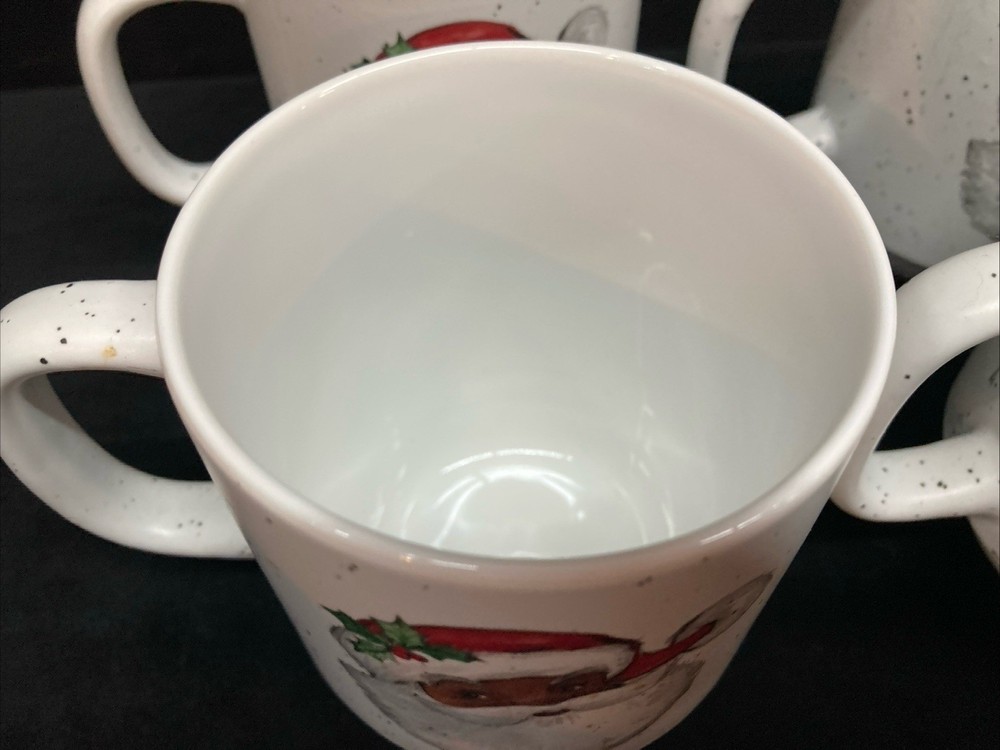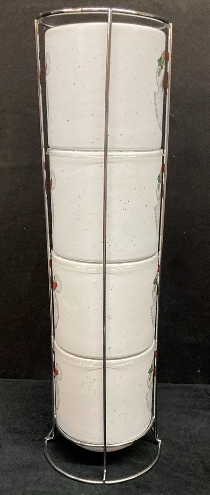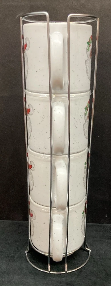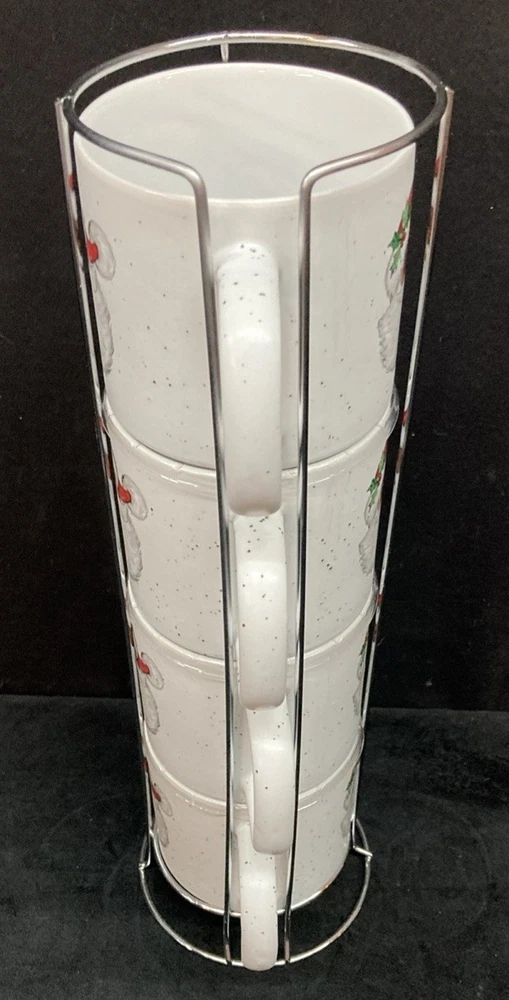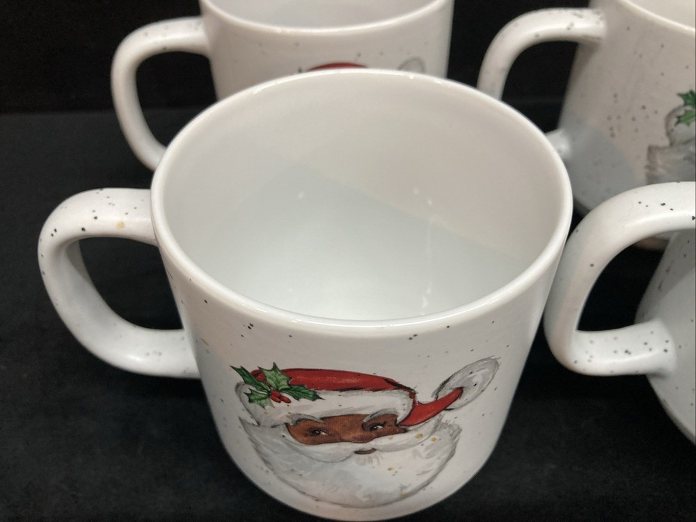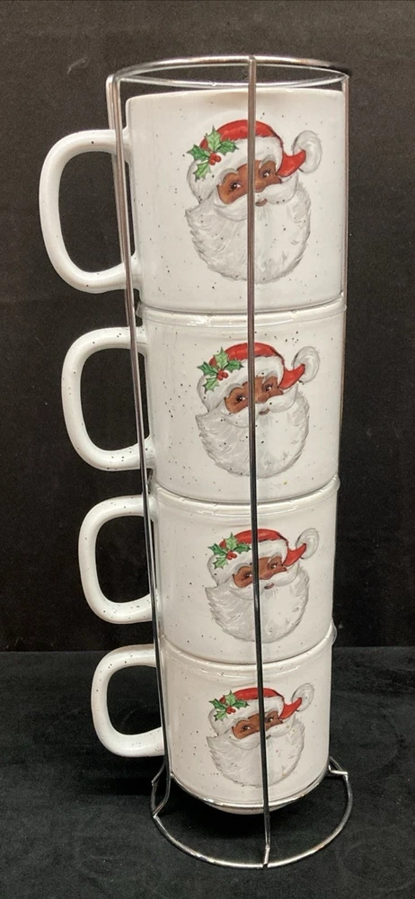 This set of four Peppermint & Pine Black Santa Stackable Coffee Mugs are a festive and charming addition to your kitchen or dining space. The set is pre-owned and comes in good, clean condition with no chips, cracks, or breaks. Each much holds 16oz. Please see pictures for details. If you any questions or concerns, please do not hesitate to contact us. Check out our other items and message us if interested in more than one listing as combining items could save you money on shipping.