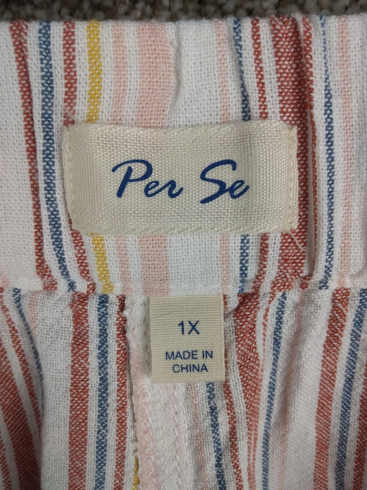 For Sale: A pair of pre-owned Per Se Linen Blend Pull On Capri Pants Size: Women's 1X Measurements: Refer to photos above. Great pair of pants from an excellent brand! In good gently used condition with no major flaws such as rips, tears, or stains. We ship items daily, so plan to receive your item(s) quickly! We also combine & discount shipping for orders with multiple items. From a smoke-free home. We accept domestic 30-day returns. We provide a variety of measurements on all items. Measurements are approximate and as close to accurate as possible but certain fabrics and styles can have a slight variation. Please be sure to check all measurements on used garments as they have been laundered and might vary from other items in the same style. Please message me with any question you may have, I answer most questions very quickly!