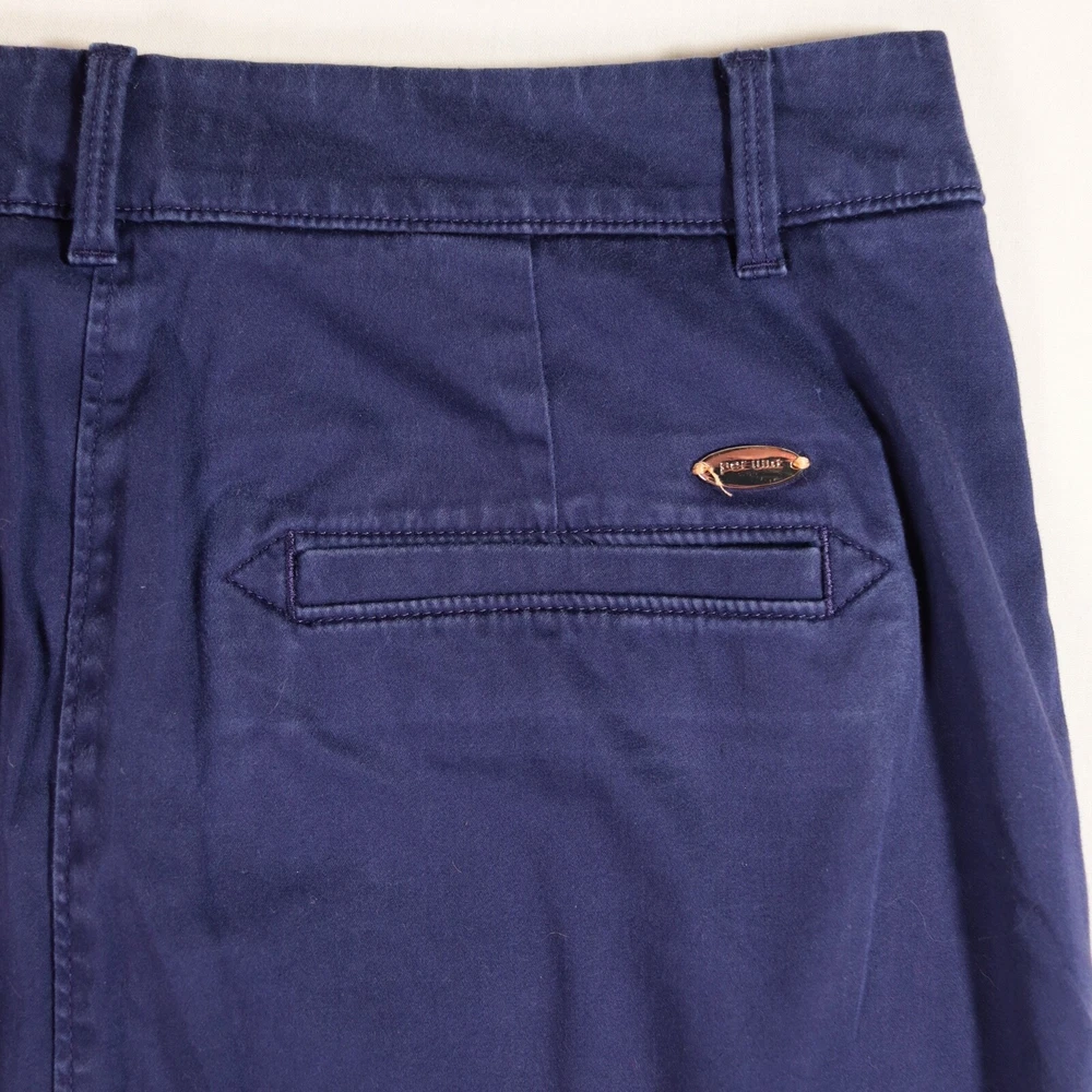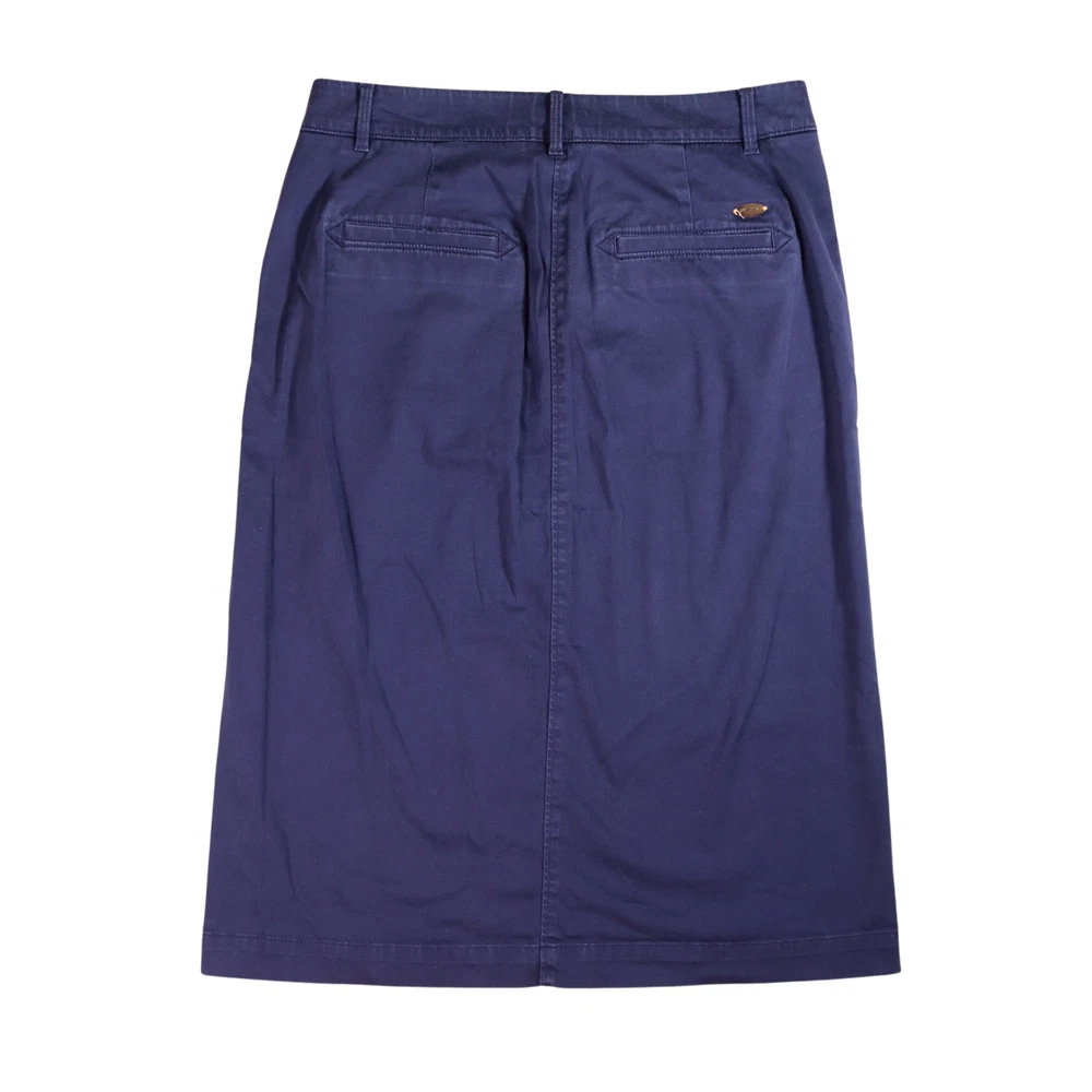 Per Una Skirt Women's UK 12 Navy Blue Midi Pencil Cotton Stretch M&S W31.5 L27