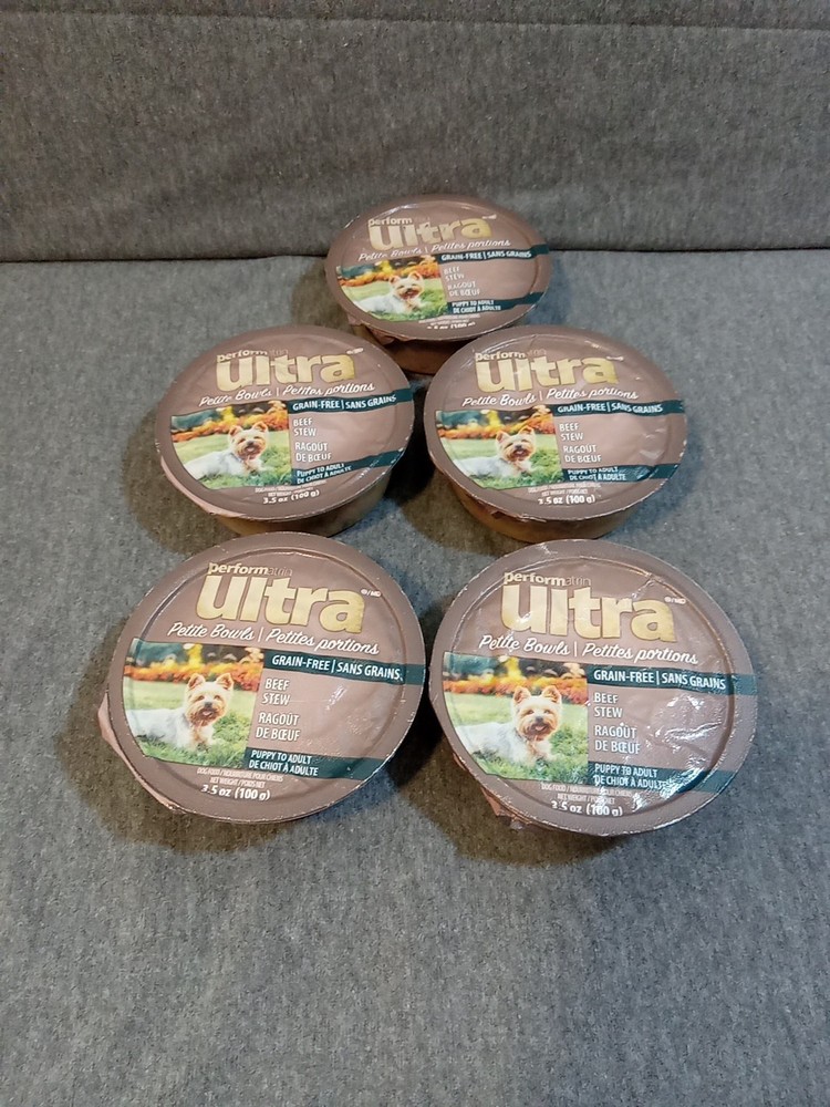 Performatrin Ultra Wet Dog Food Beef Stew Puppy To Adult 3.5 Oz Lot Of 5 The Performatrin Ultra Wet Dog Food Beef Stew is a premium quality wet food formulated for dogs of all sizes, from puppy to adult. Made with beef as the main ingredient, this grain-free recipe is not only delicious but also nutritious for your furry companion. With an expiration date of 4/2028, you can trust that your dog is getting a fresh and high-quality meal. This lot of 5 containers ensures that you have plenty of food to feed your dog for an extended period of time. Made in the United States, this wet food is a great option for pet owners looking for a premium solution for their canine's dietary needs. *** All Items Purchased On OR Before 1 PM EST Will Be Shipped The Same Day *** *** Item Descriptions *** Brand - Performatrin Ultra Condition - New Type - Wet Dog Food Food Flavor - Beef Stew For - Puppies To Adults Size - 3.5 Oz. UPC# - 778198062130 Expiration Date - 2/14/27