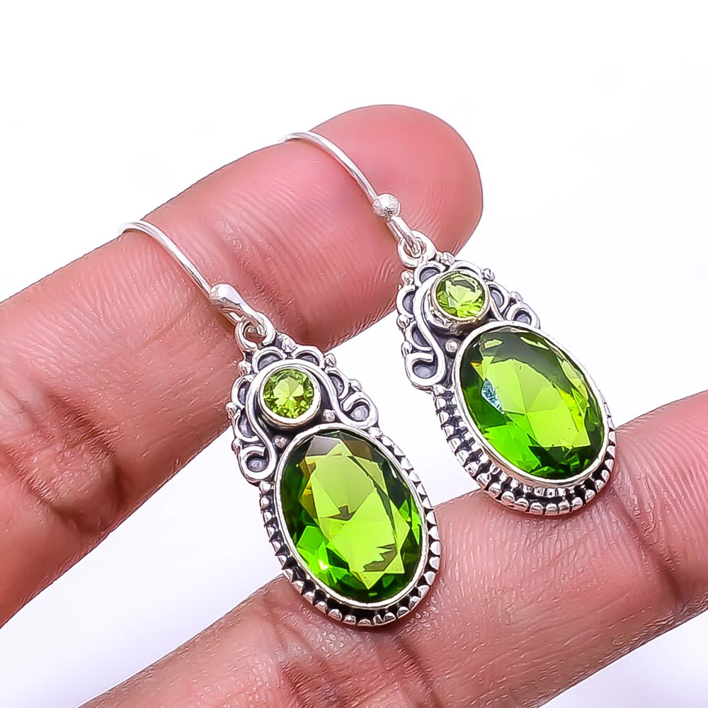Theme Beauty Main Stone Depth As Seen in Picture Main Stone Length As Seen in Picture Main Stone Width As Seen in Picture Seller Warranty Yes Shape As Seen in Picture SKU E_9213_227_13 Main Stone Size 14X10 Mm Antique Yes Handmade Yes Type Earring Style Drop/Dangle Metal Sterling Silver Metal Purity 925 Parts Per 1000 Base Metal Sterling Silver Total Carat Weight 30 Main Stone Peridot Main Stone Creation Lab-Created Main Stone Shape Oval Main Stone Color Green Main Stone Treatment Lab-Created Material Gemstone, Stone Number of Gemstones 4 Item Length 1.56 Features Engraved, Nickel-Free, Handcrafted Ear Area Lobe Brand Unbranded Country/Region of Manufacture India Country of Origin United States Color As Seen in Picture Diamond Clarity Grade Not Applicable Number of Diamonds As Seen in Picture Item Diameter As Seen in Picture Gemstone Clarity Grade Translucent Diamond Color Grade Not Applicable Customized No Colored Diamond Intensity Not Applicable Certification 100% Genuine Guaranteed Setting Style Bezel Occasion Christmas, Birthday, Anniversary, Engagement, Wedding, Valen Shipping & Handling - Charge - 1st item-5.90 And Additional item-1.90 Handling Time - 1 Days . Delivery Time - 2 TO 3 DAYS. Shipping Service - USPS First Class Package 2 -3 Days. Returns - 1.We offer a 100% Money Back Guarantee minus shipping for 30 days after receiving the Item / item's. 2..The item must not be altered or damaged in any way shape or form. 3.Upon receiving these items your payment will be refunded. 4.Email us for return instructions before sending merchandise back. 5.Please allow up to 1 business day for all returns to receive credit. 6.Sizing does not affect the return policy. Payment - We accept PayPal for Payment ,should made with in 14 days once buying or winning done , in case of late information expected .