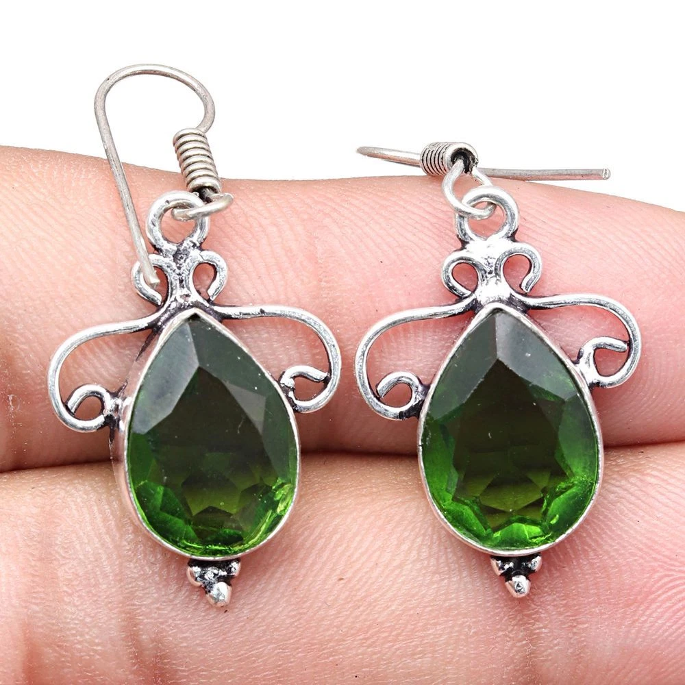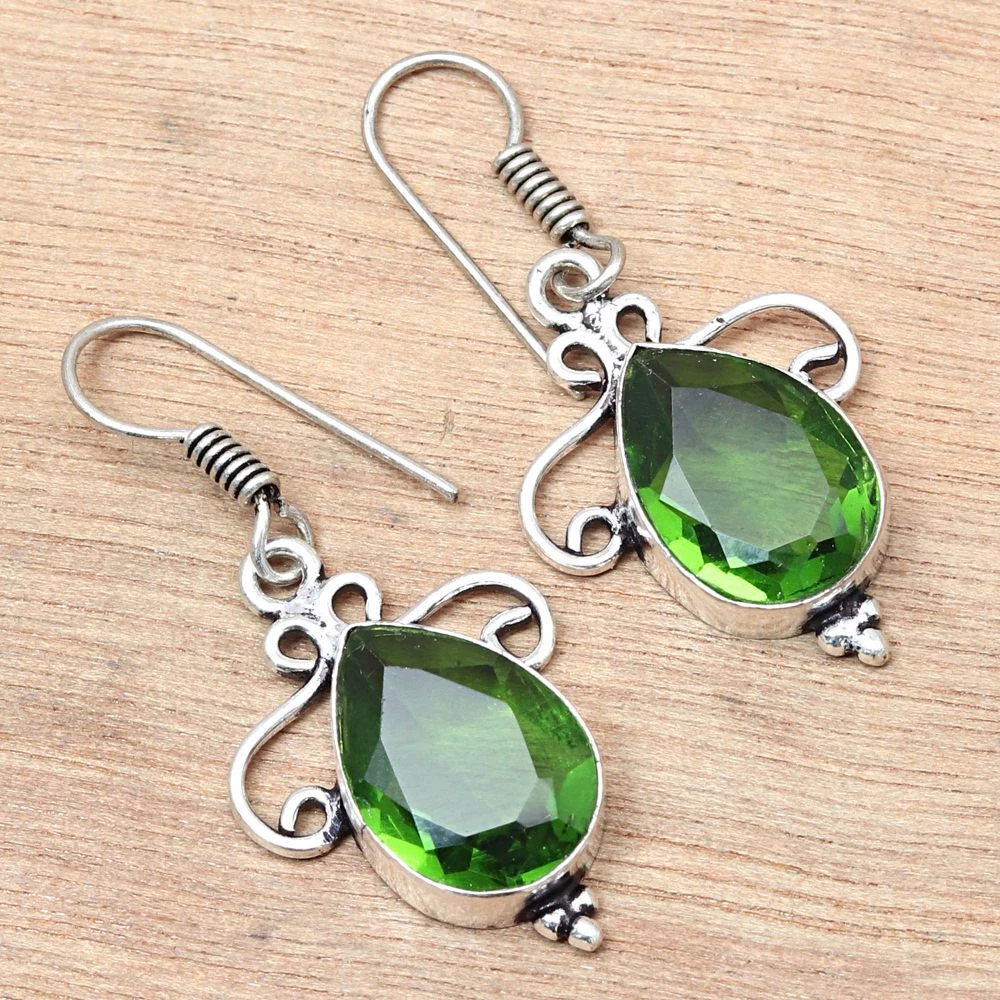 Peridot Quartz Gemstone Handmade Gift For Her Silver Jewelry Earrings 1.5''