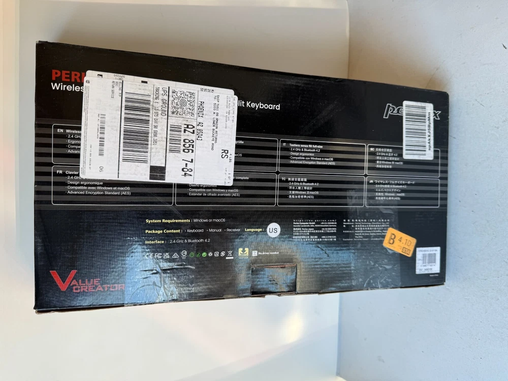 Connectivity: Wireless, Bluetooth Keyboard Language: English Country/Region of Manufacture: China MPN: PeriBoard-612 Color: Black Model: Perixx PeriBoard-612 Type: Keyboard UPC: Dose Not Apply Seller Notes: “New - Open Box.” gtin13: Dose Not Apply Features: Enhanced Function Keys, Portable, Multimedia Keys, Palm Rest, Curved Keys Brand: Perixx Keyboard Layout: QWERTY (Standard)