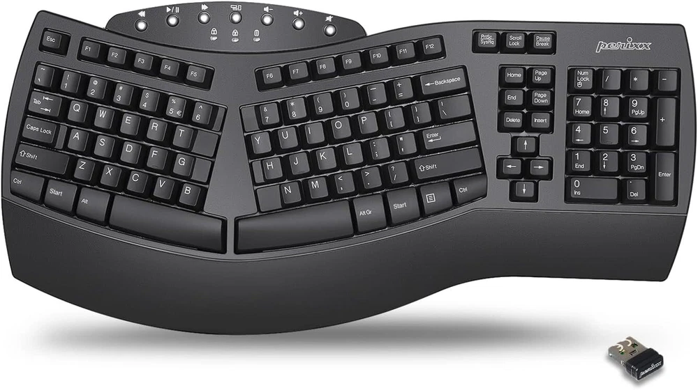Perixx PeriBoard-612 Split Keyboard Black Bluetooth Wireless Ergonomic 2.4GHz