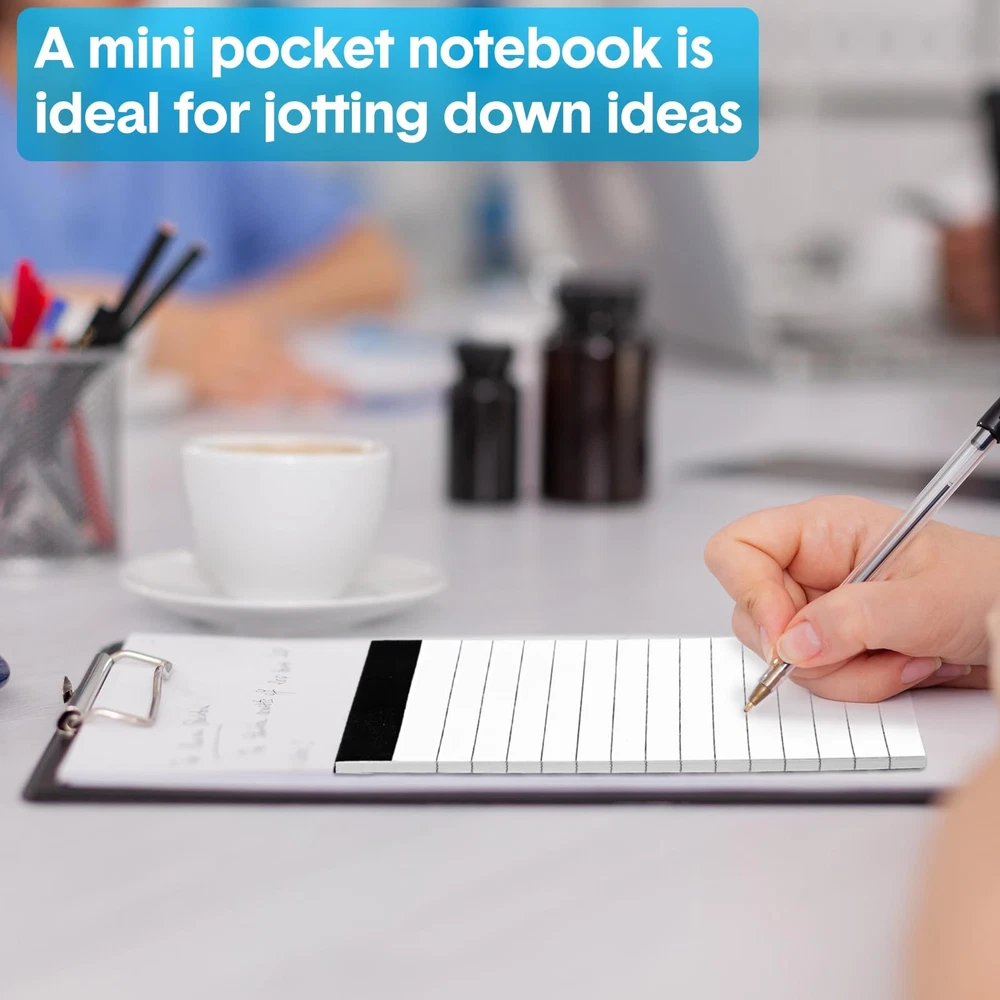 Features: Idea Gift: Give the gift of organization and inspiration with these small notepads. They're suitable for students, colleagues, or anyone who loves to stay organized and creative. Various Occasions: Whether for work, school, or personal use, these small legal pads are a versatile tool for anyone who needs to take notes or jot down ideas in meetings, lectures, brainstorming sessions, and more. Specifications: Material: paper, cardboard Color: black, white Size: 4 x 6 inches Package includes: 100 x Small Notepads Refills Warm notes: Please allow a little error on the size due to manual measurement. Valuable Package: you will receive 100 small notepads, so you get plenty of space to jot down your thoughts, to-do lists and reminders, enough for your daily writing and note taking needs Compact and Convenient: the 4 x 6 inches notepads bulk make them easy to carry around while still providing ample space for note taking, slip legal pads into your pocket, purse, or backpack and always have a place to write down your ideas Reliable Quality Paper: each small lined notepad features quality 80gsm paper that is thick enough to withstand heavy use, smooth on the surface, the single sided printed paper prevents ink from penetrating between pages, ensuring a clean and clear writing experience Easy to Tear: these memo pads are perforated for easy tearing individual sheets without leaving a messy edge, equipped with sturdy and thick cardboard pads, the note pads provides you with neat and orderly lines to keep your records organized and legible Versatile Use: whether you're at home, in offices, at school, or on the road, these small note pads 3x5 are suitable for keeping track of your daily tasks, brainstorming ideas, or even practicing your handwriting, these small writing pads are also the good helper for waiters and waitresses