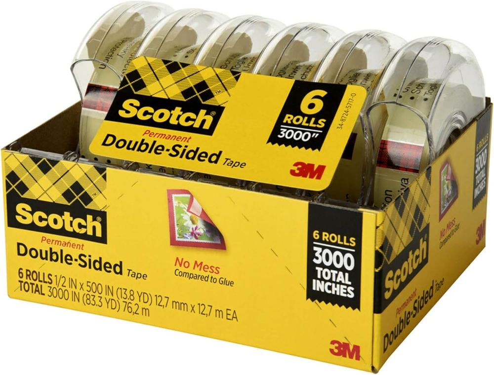 Store New Arrivals Add to Favorite View Feedback Contact Permanent Double Sided Tape, Card Making and Holiday Scrapbooking Supplies, Alternative to Gift Wrap Tape for Wrapping Presents, 0.50 In. X 500 In., 6 Rolls with Dispensers Description Item model number 6137H-2PC-MP Number of Items 1 Material Type Plastic Ink Color Clear Unit Count 6.0 Count Product Dimensions 4"L x 4.69"W x 3"Th Material Plastic Manufacturer Part Number 6137H-2PC-MP Adhesive Format Double Sided Is Discontinued By Manufacturer No Item Thickness 0.5 Millimeters Water Resistance Level Not Water Resistant Adhesive Location both_sides Item Weight 7.4 ounces Item Resistance not_resistant Surface Recommendation Drywall Adhesive Side Count 2 Compatible Material Craft Color Clear Size 6 Rolls DOUBLE SIDED TAPE FOR HOLIDAY GIFTING: 6 rolls of Scotch Double Sided Tape with 6 Tape Dispenser offer a neat, clean, strong and long-lasting way to hold gift wrap and gift bags together, making it essential this holiday season MESS-FREE BONDING ADHESIVE: Both sides of the tape are coated with permanent adhesive for a strong, secure hold without the drips, clogs and air bubbles similar to white glue, making it a great alternative to other adhesives traditionally used on presents INVISIBLE TAPE: This double-sided clear tape holds things together without being seen, making it essential for gift wrapping, holding Christmas boxes together and other activities that require bonding this Christmas season TAPE WITH NO LINING, HAS PROTECTIVE WRAP: While the tape does not have a peel away liner, unlike scrapbook tape, there is an 8" protective liner that needs to be removed before tape can start dispensing IDEAL FOR HOLIDAY SUPPLIES: Perfect for creating scrapbooks, easy ornaments, Christmas cardmaking, paper crafts, gift wrapping, collages, mixed media art and Christmas party decorations TAPE DISPENSERS INCLUDED: Tape glides off these easy-to-use Scotch tape dispensers (included) smoothly PACKAGE CONTENTS: One package with six dispensers containing six tape rolls that are 0.5 in. x 500 in., with a 1-in. core SCOTCH BRAND: The best projects start with the #1 selling home and office tape Scotch Permanent Double Sided Tape with a Tape Dispenser offers a neat, clean, strong and long-lasting way to discreetly hold holiday decorations together. This clear tape is a great choice for Christmas gifts containing craft kits for adults and kids, acting as a convenient double sided tape for scrapbooking or card making. You can also use this photo-safe tape to create holiday collages, Christmas cards or a seasonal photo album. Both sides are coated with permanent adhesive, giving a strong, secure hold and providing a less messy alternative to glue and other adhesives. The tape itself has no peel away liner, unlike scrapbooking tape, but you will need to remove the protective liner before dispensing the tape. The tape dispenser (included) fits neatly into holiday gift bags and is always ready to help get the job done with easy-glide application. The best projects start with the No. 1 selling home and office tape (based on 2022 NPD data). By choosing to use the right tape, you’re choosing to create a better result. Scotch Brand offers a full line of tapes specifically designed for the various demands of the project or job. ABOUT US We offer the best prices around on high quality products. Our E-store includes media such as books, movies, music and games while offering electronics, toys, sporting apparel, clothing, tools, general home, garden items and more. SHIPPING We are always working hard to ensure your package arrives as soon as possible. Please understand that some factors like weather, high postal traffic, and the performance of shipping companies are outside of our control. We offer free shipping to the lower 48 states and ship within 2 business days of payment, usually sooner. We do not accept P.O. Boxes. Please provide a physical address. RETURNS We offer a 30-Day Return Policy on items which you are not completely satisfied with. You have the option for a full-refund or an exchange of the item. No returns are available on items shipped outside of the USA. PAYMENT We accept PayPal. CONTACT US This page content is yet to come Please ad us to your favorite seller and visit again later Thank You CUSTOMER SATISFACTION We try our very best to make sure every customer is completely satisfied. If there's a problem, message us! We're happy to help.