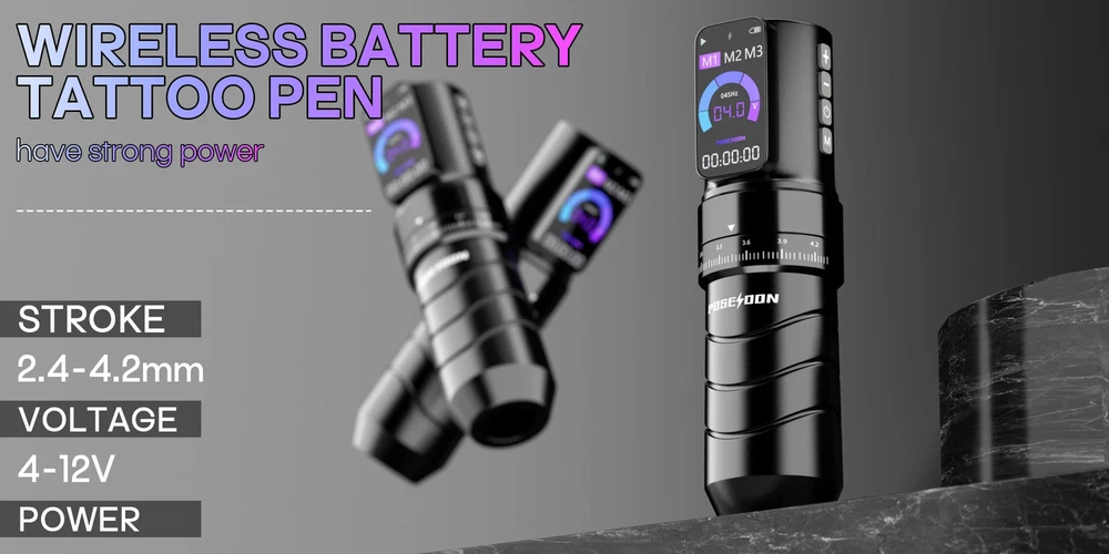 Product ParamentItem:HM144 Material:Aluminum Output Voltage:4-12V Suggest Voltage:6-9V Working frequency:12000RPM Color:Black Used for:Embroidery tattoo Please power on current below 2A Selling point 1.Quiet stability, strong movement motor, needle stability 2.New hand-slip anti-slip design, comfortable pen grip, good hand feeling, not tired for long time use 3.Tattoo machine pen has exquisite workmanship, high hardness and lightweight, unibody 4.There is an aluminum alloy protective layer at the interface of the needle cylinder and the tattoo pen, which is tightly combined and more wear-resistant. 5.Used for Embroidery tattoo Kit Weight:about 1000 Tattoo Machine Kit: Tattoo Pen *1 POSEIDON Tattoo Cartridge Needles *20 5cm Black Bandage*1 Tattoo Clean Pad*4 Gloves*2Pair Tattoo Transfer Paper*4 Tattoo practice leather*1 Tattoo Repair Patch*1 Tattoo ink Cup:medium size*20 /small-sized*20 POSEIDON INK 30ML*1