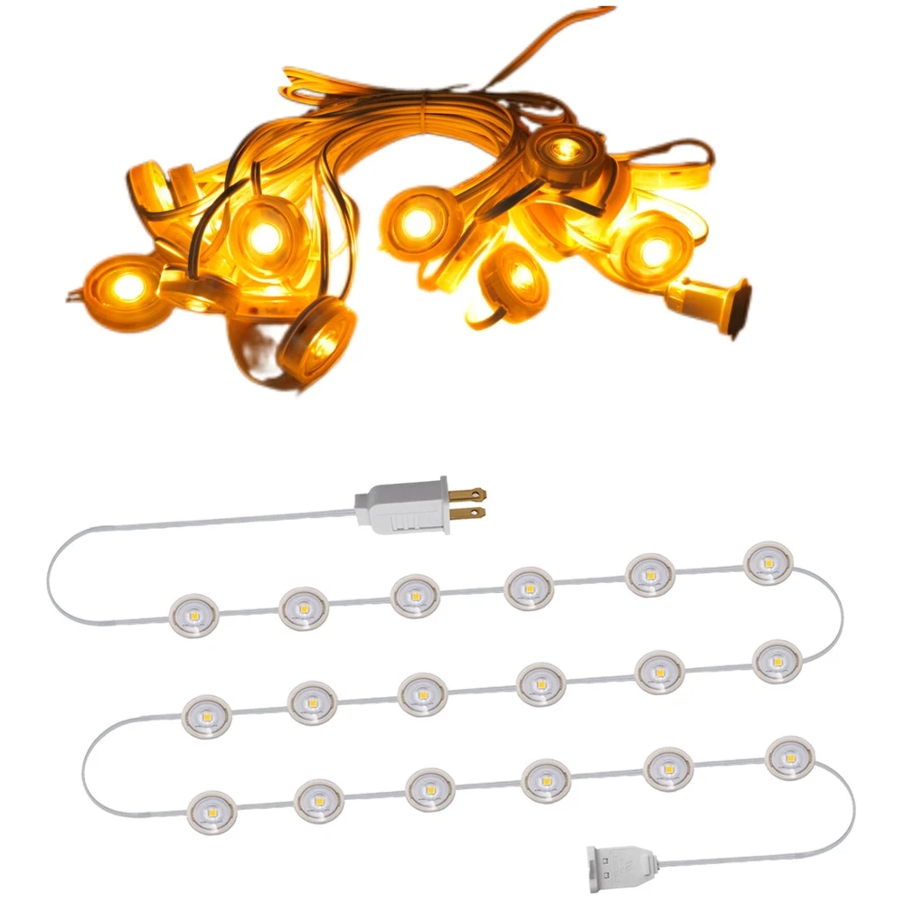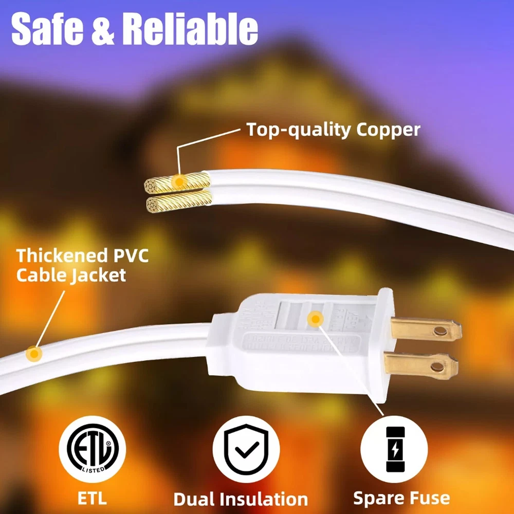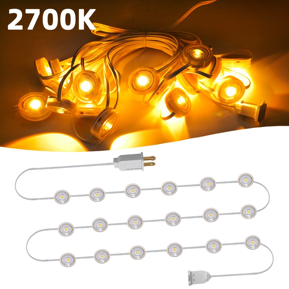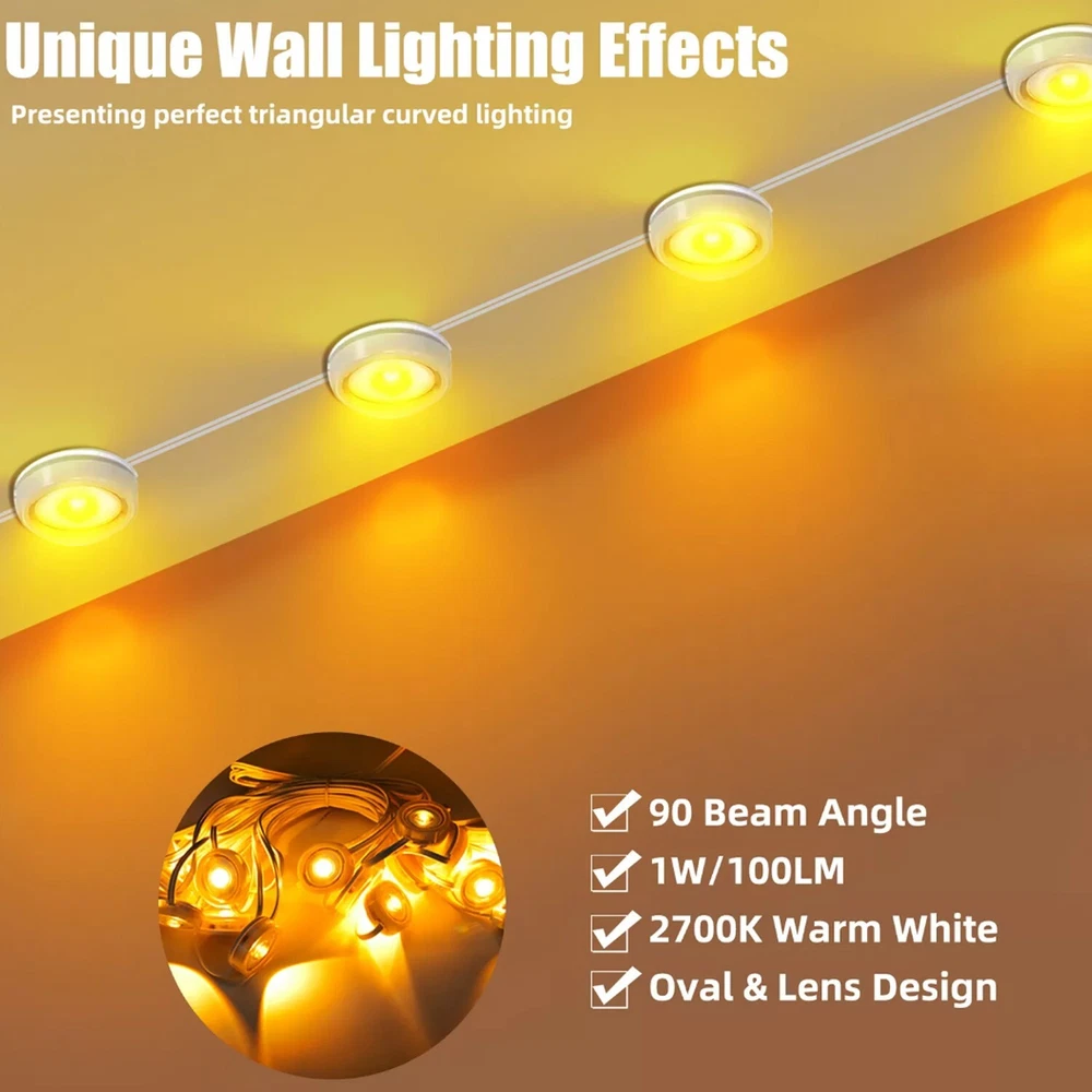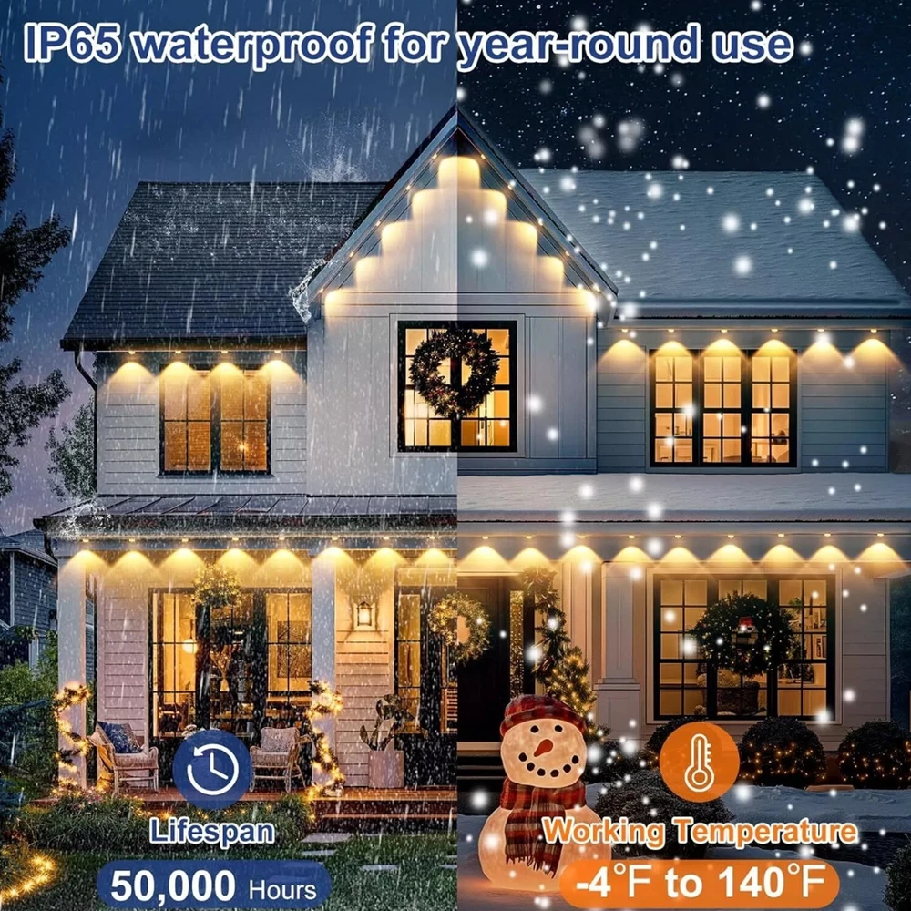 Permanent Outdoor Lights,100FT with 72 LED Lighting,Eaves Light for Daily,Garden Please Note: 100FT with 72 LEDs = 2 Pack 50FT 36 Lights Same day send from GA warehouse. More than 200pcs stock in local warehouse,welcome to ask best price for bulks,thanks. Our LED Eaves Lights provide 2700K light to perfectly match your home's exterior lighting. Elevate Your Festive Ambiance featuring an anti-glare lens for a stunning arc-shaped light effect. All-in-One Kit - Two 25 ft. white strands, total 50 ft., 36 LEDs. There is 3M adhesive tape on the back of each light and we also give you some clips, which you can use to fix the string of lights to make the string of lights hanging on the eaves more sturdy. Highlights Illumination angle of a single lamp bead is 90° and it presents a unique arc-shaped light effect Simple installation, use the included 3M adhesive to attach the lights on the wall or eaves, secure wires with clips Our lights are IP65 waterproof and have a lifespan of 50,000-hours, suitable for any can environments ranging from minus 20 to plus 40°C Our lights are ETL certified for safety and reliability 2-year warranty Details Actual Color Temperature (K) 2700 Bulb Color White Bulb Shape Elliptical Color Rendering Index (CRI) 90 Color Temperature Warm White Dimmable Capability Non Dimmable Durability Shatter Resistant, Waterproof, Weather Resistant Exterior Lighting Product Type String Light Fixture Color/Finish Warm White Indoor/Outdoor Outdoor Light Bulb Type Included Integrated LED Lighted Length (ft.) 50 ft 【Transform Your Outdoor Ambiance】: Each 50FT outdoor permanent lights boast 36 warm white LED sources, each shining at 120lm/w—nearly three times brighter than standard eave lights. With a color temperature of 2700K, neither too yellow to make the scene old-fashioned nor too white to ruin the mood, these lights offer a perfect balance for daily and accent lighting, creating a cozy atmosphere ideal for family gatherings or festive celebrations that will leave a lasting impression on your guests. 【Reliable Addition to Any Outdoor Environment】: These year-round outdoor lights undergo rigorous testing to withstand extreme temperatures from -4℉ to 140℉ (-15℃ to 60℃). Designed to thrive in diverse climates, these forever outdoor lights are built with UV-resistant materials and an IP65 waterproof rating. Amazing Permanent Lights for Outdoor and Indoor Under Eave Lights Crafted with great sealed waterproof technology, this all-weather soffit decorative light is designed to withstand the elements, ensuring safe outdoor use throughout the year. Indoor Decorative Lights These string lights are standout decorative accent suitable for enhancing indoor spaces with beautiful wall washing lights 【Install Once, Enjoy Forever】: Each light is equipped with pre-assembled high-strength adhesive tape and cable screw clips for secure installation. The glued permanent Christmas lights can easily support their weight and withstand pulling forces up to 15lb, eliminating the need for frequent adjustments. Bid farewell to the hassle of climbing the ladder repeatedly to re-attach lights and spend more time enjoying the ambiance. 【Captivating Lighting Effects, Versatile Applications】: With a 90°beam angle and large wall-washing depth, each light creates a stunning illumination, akin to adding a yellow gemstone necklace to your house. You could customize the brightness by pairing the permanent lights with dimmers (not included). 【Worry-free to Get】: If you encounter any problems, please feel free to ask us for help.WZYM is always committed to offering premium products to our consumers and we highly value the advise of consumers. Warm Tips: The light string is not cuttable. What's in the box 50FT Permanent Outdoor Lights (36 Lights/String) x2 TS-24/TS-25 US standard plug x2 User Manual x 2