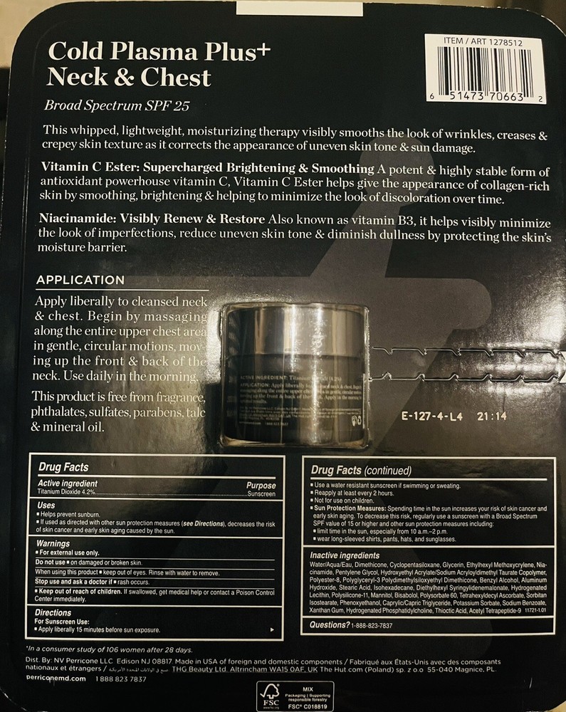 NEW Perricone MD Cold Plasma Plus+ Neck & Chest Broad Spectrum SPF 25 AUTHENTIC*. Factory sealed! Brand New! NEW Perricone MD Cold Plasma Plus+ Neck & Chest Broad Spectrum SPF 25 Reach out for fasssttt shipping options!