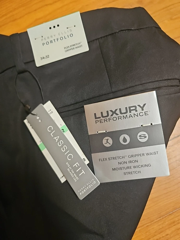 Elevate your wardrobe with these Perry Ellis Flex Stretch Gripper Waist Dress Pants, perfect for any occasion from casual to formal. These pants feature a deep depths color and solid pattern, with a flat front and straight leg style. The waist size is 34 inches and the inseam is 32 inches, with a mid-rise and slash pockets. The pants are made of 100% polyester and are machine washable, with a zip and hook & eye closure. They are perfect for summer, fall, and spring seasons and have a regular fit. These pants are a great addition to any wardrobe, whether you're going to a party, work, or just running errands.