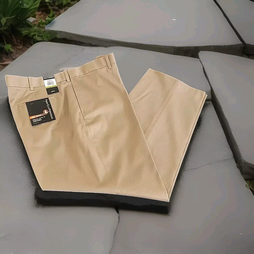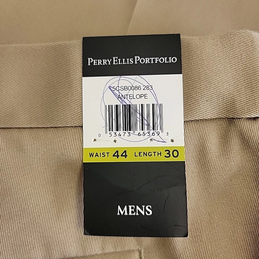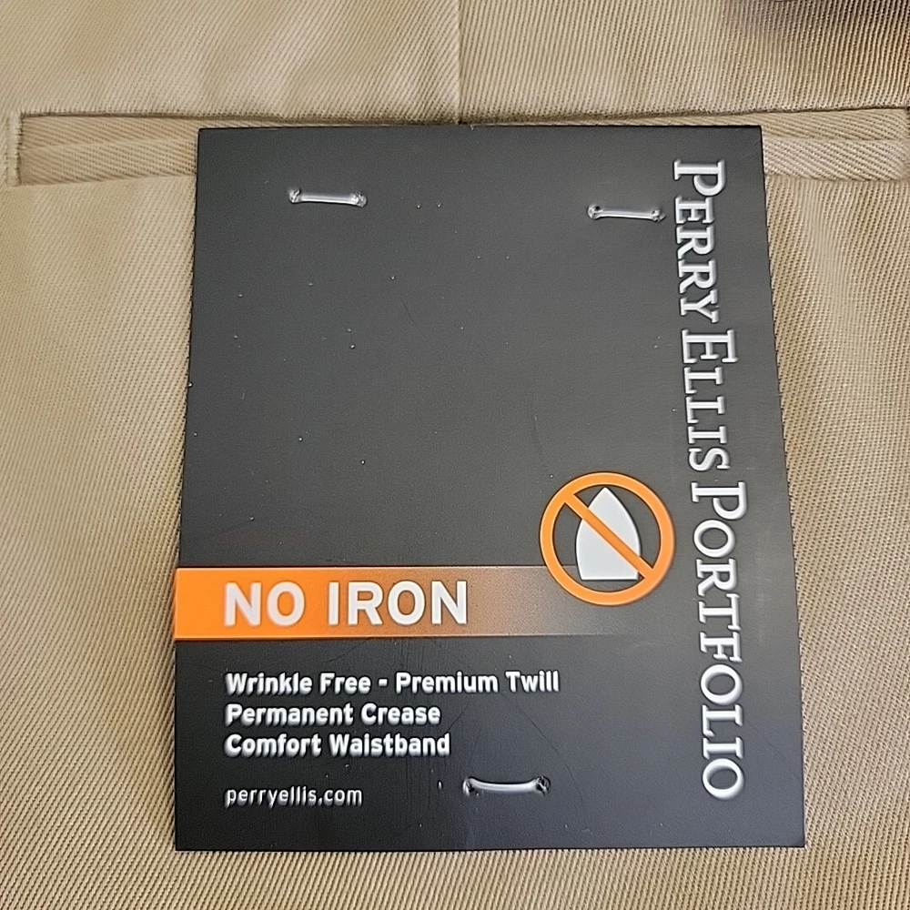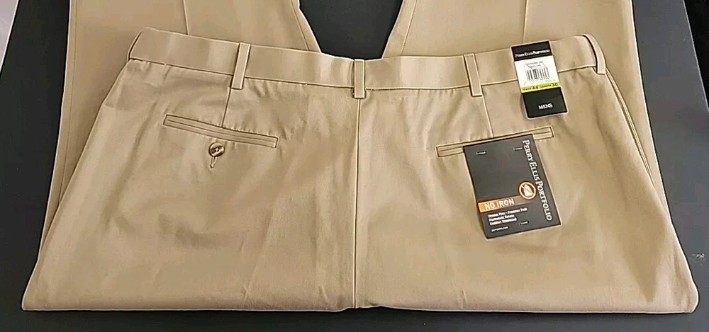 Look sharp and stylish in these Perry Ellis Portfolio Men's Dress Pants. These pants are perfect for any occasion, whether it's for business, workwear, casual or party/cocktail events. Made of comfortable and durable cotton fabric, these pants feature a high rise waist and a straight leg style that will provide you with a classic and timeless look. These pants come in a stylish antelope color(tan) and are available in size 44. They also have convenient features such as slash pockets, no-iron and wrinkle-free materials, and permanent crease. These pants are machine washable and are perfect for easy care. Ideal for any season, these Perry Ellis Portfolio Men's Dress Pants are a must-have addition to your wardrobe.
