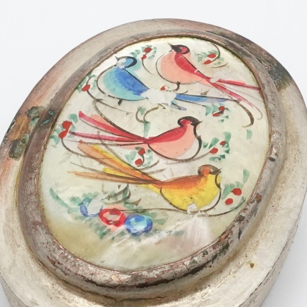 Welcome to my e B a y Store Vintage Persian Hand Painted Mother of Pearl Oval Trinket Pill Box Length - 2.25" Height - 0.70" Width - 1.5" Total Weight - 52.3 Grams Bid With Confidence Feel Free to ask any questions before bidding please If you would like additional pictures please send me a message Check out my other listings for more great deals! 100% Authentic or your Money Back Guarantee!! Free Shipping on All Items!