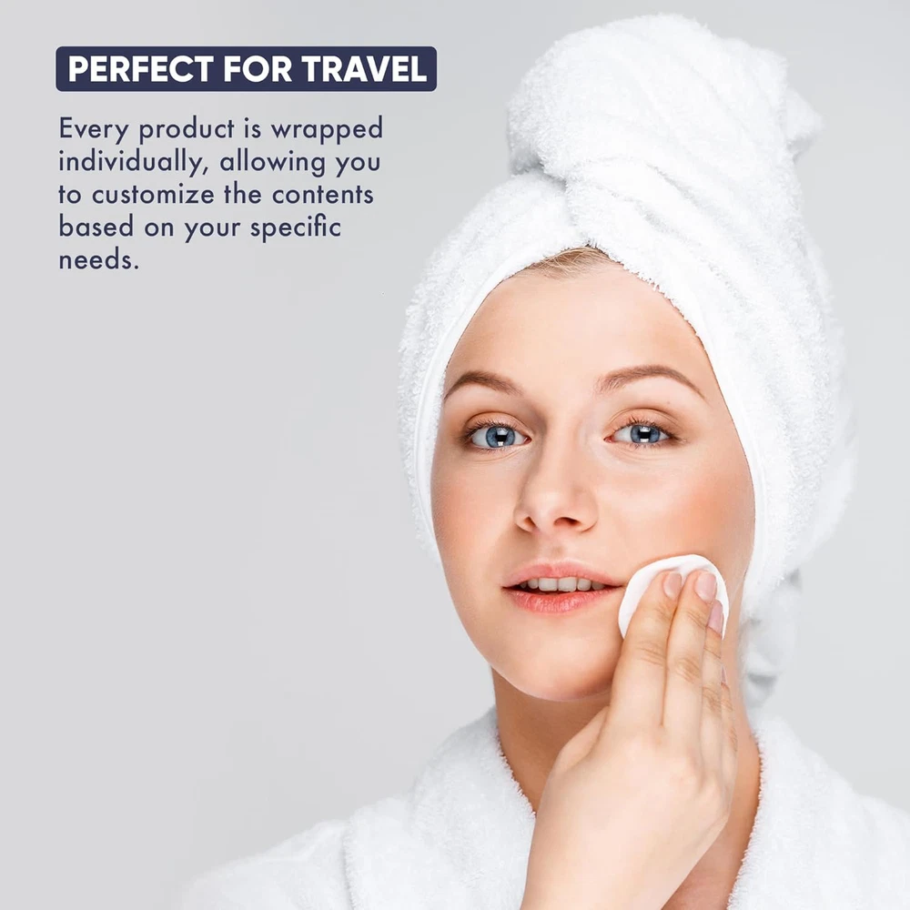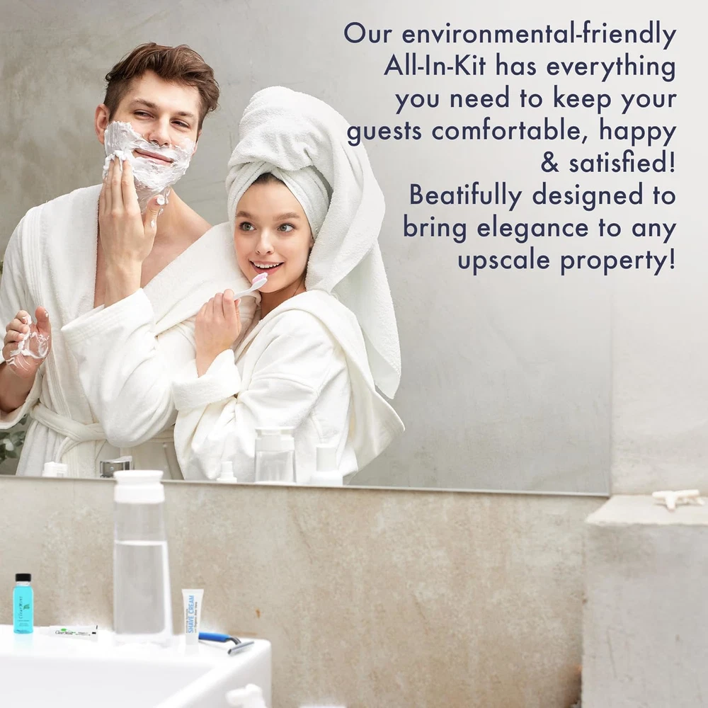 Personal Care Travel Size Toiletries | 1-Shoppe All-in-Kit Hotel Amenities Bulk BULK TRAVEL SIZE TOILETRIES: We offer luxury mini toiletries in disposable eco-friendly packaging great for single use. Our hygiene kit is perfect for hotels, Airbnb essentials, VRBOs, gyms, traveling, vacation rentals, guest rooms, homeless care package supplies, & more! IN THE BOX: The 75 piece travel kits have everything you need to keep your guests comfortable. The travel accessory set includes 15 of each: Shaving Set, Toothbrush, Tooth Paste, Mouthwash, Make-Up Remover, Cotton Swabs, Nail File & Sewing Kit! WHY CHOOSE DIVERSIFIED HOSPITALITY? We offer high-end products & environmentally-friendly bulk toiletries that are designed to bring elegance to any upscale property. This toiletry kit will keep all of your guests happy & satisfied! TSA AIRLINE APPROVED: Our travel hygiene kit is also great for personal travel because all included toiletries meet carry-on standards for air travel. Pack everything you need for your upcoming vacation in your carry-on luggage!