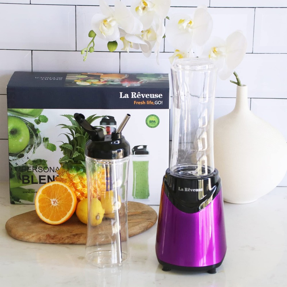 POWERFUL AND STRONG -Personal blender 300 Watts power,4 leaves high speed stainless steel blade,strong enough to crush vegetables and fruits easily.Great for making smoothies, shakes, baby formula and morning protein drinks BPA-FREE -With 2 x food-material 18 oz / 550 ml blending bottles,great for family member use. Enjoy healthy on the go with your loved ones. Bottles are BPA-free to ensure healthy drinking PORTABLE AND CONVENIENT -3 lbs and cup size :3" diameter x 9" height.Blend and drink from the same bottle,with extra travel lid.The sports lid makes it easy to take on the road to the office, gym or class, in the car ( fits most car drink holders) or in your bag EASY TO OPERATE, SAFE TO USE -Just press down and twist the bottle to click into the LOCK place. It is also easy clean by water.Safe,healthy,durable,efficient.It will only work when the bottle is installed properly in the LOCK place. It comes with an overheating prevention and automatic recovery function A GREAT CHOICE FOR HOLIDAY SEASONS -Consider preparing a smoothy blender to friends or family, helping them enjoy the benefits of convenient and healthy blending throughout the holiday season and beyond