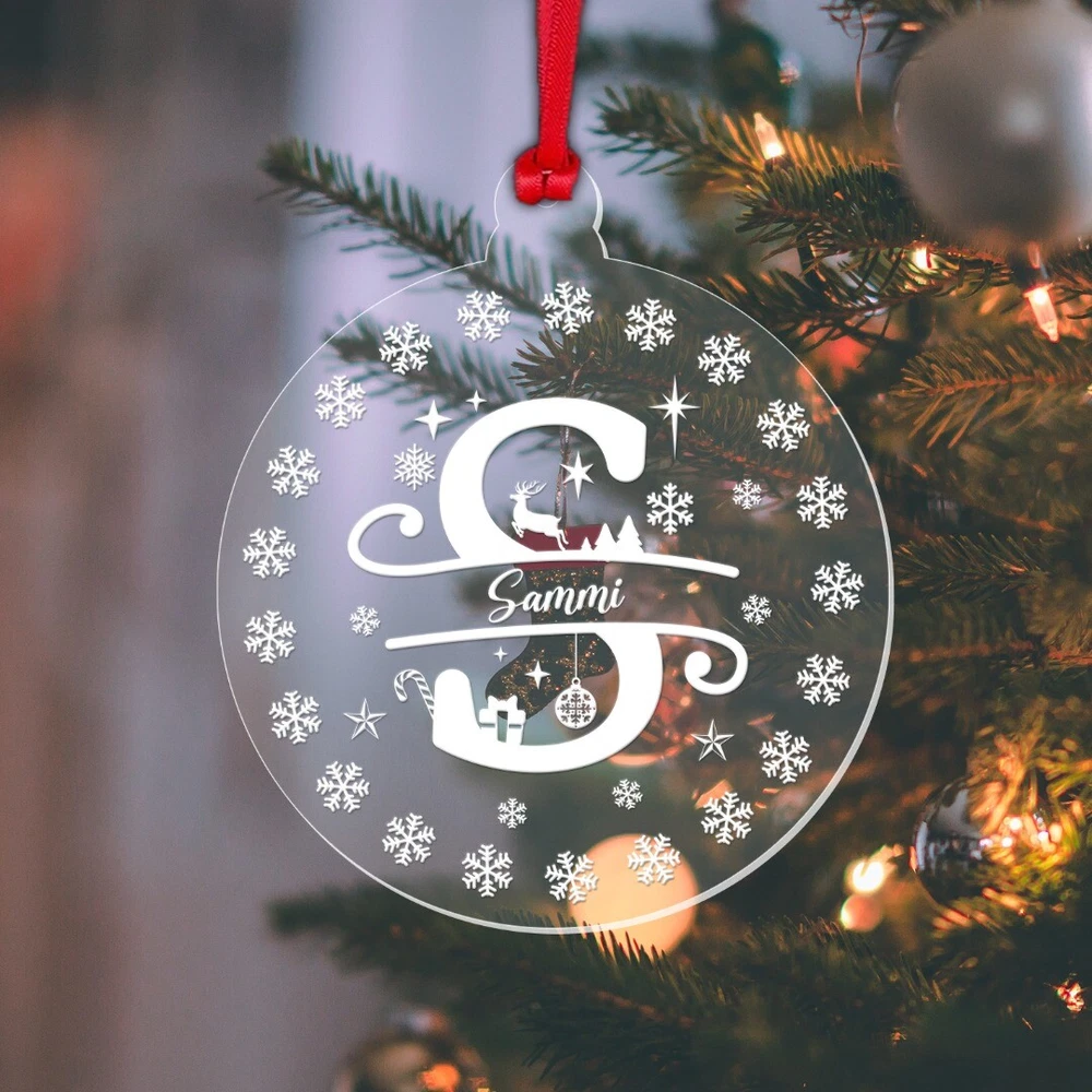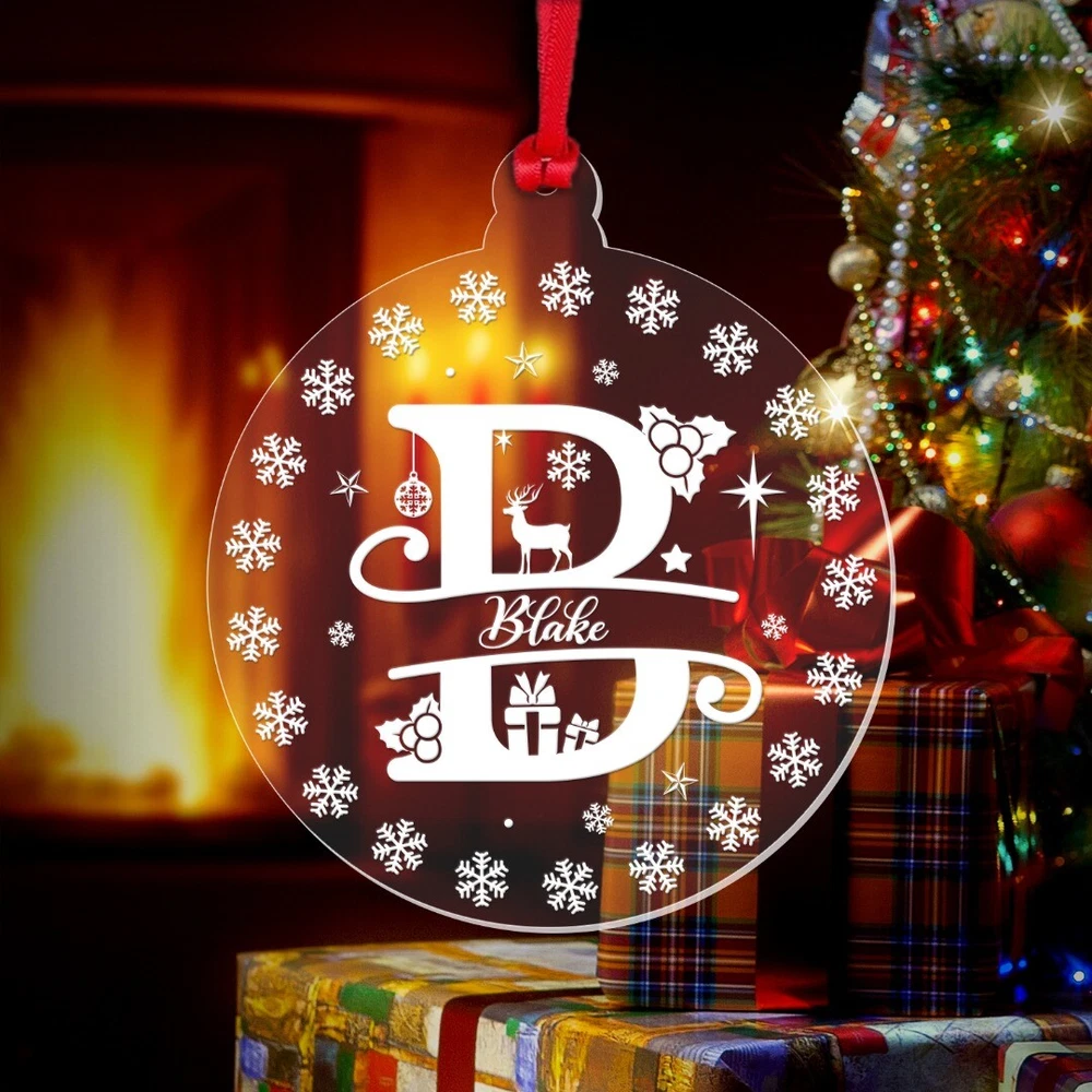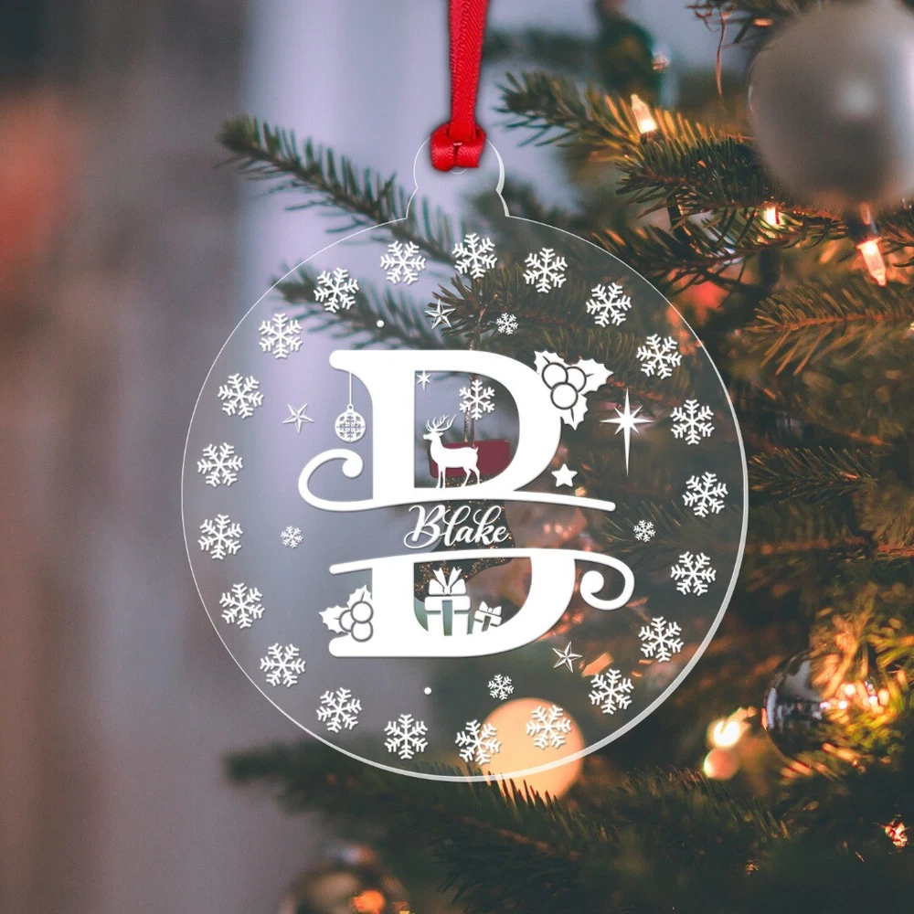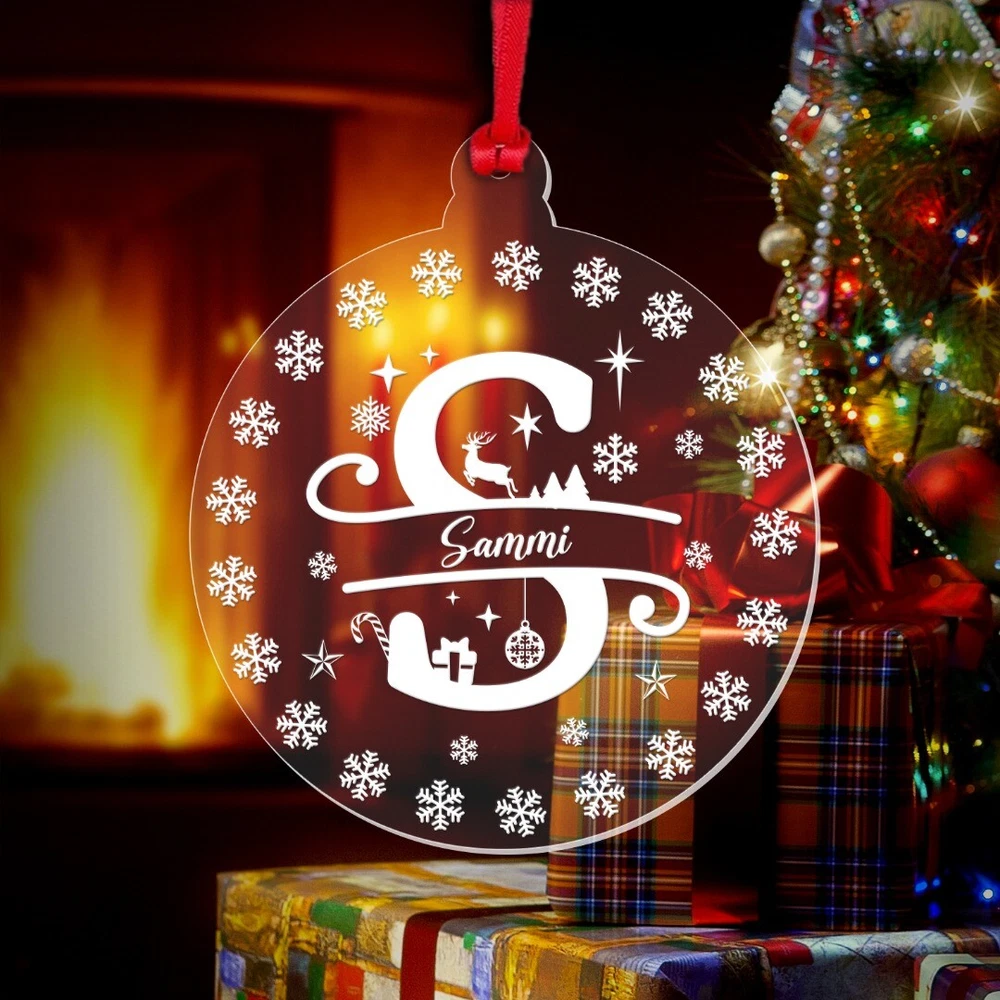 Decorate your Christmas Tree or Home with this Beautiful Personalised Clear Acrylic Christmas Bauble! Ideal as a Christmas Gift and will become a Treasured Keepsake! Personalise with any name! Bauble Size: 8cm wide x 9.3cm height Thickness: 3mm Acrylic Please note: This is a flat bauble shaped acrylic hanging decoration (not a sphere) Please note: The design on the bauble will vary depending on the Monogram Letter required – please see the image showing all the letters to get an idea of how the letter required will look Comes complete with Double Sided Red Satin Hanging Ribbon as standard, and supplied in a Beautiful Organza Gift Bag Made from Clear Laser Cut Acrylic. The design is Laser Engraved into the acrylic to give a white/frosted appearance to the engraving. Personalisation: Please enter your required text into the Personalisation Box or in the "Notes to Seller" Box during checkout. Please enter your text exactly as you would like it to appear. All text will be centrally aligned and text will be formatted as entered. If you require any upper case letters, please enter it this way when ordering. Text will be sized to best fill the space. The more characters/letters you enter, the smaller the font will become. Be sure to double check names, spellings, punctuation and capitalisation before sending your text as these cannot be changed once the manufacturing begins. Designed and Manufactured in the UK. Thank you for supporting our small business.