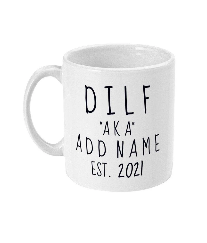 Personalised Dilf Mug New Dilf Gift New Dad Gift Est. 2021 New Baby Father To Be Product Details.. This high quality 11oz. ceramic white mug has a premium hard coat that provides crisp and vibrant color reproduction sure to last for years. Perfect for all hot & cold beverages. The highest quality printing possible is used. It will never fade no matter how many times you wash it. Material: 100% Ceramic. Print both sides. Dishwasher and Microwave Safe. High Gloss + Premium White Finish. Printed in the U.S.A. Personalized & Custom. We support personalized and custom mug to add custom, when placing an order, you can add notes to the "order note" in shipping address section. Also you can contact us directly via message. Shipping Info. Ready to ship in 1 to 2 business days, All products are made-to-order and proudly printed in the United States. Shipped by USPS and DHL, You will receive your order in 5-7 days. Replace & Refund. All products are defective during shipping broken, chipped will be replaced free of charge. You are not satisfied with the product, we will refund 100% money to you. If any other issues arise, please do not hesitate to message, we would be more than happy to assist you.