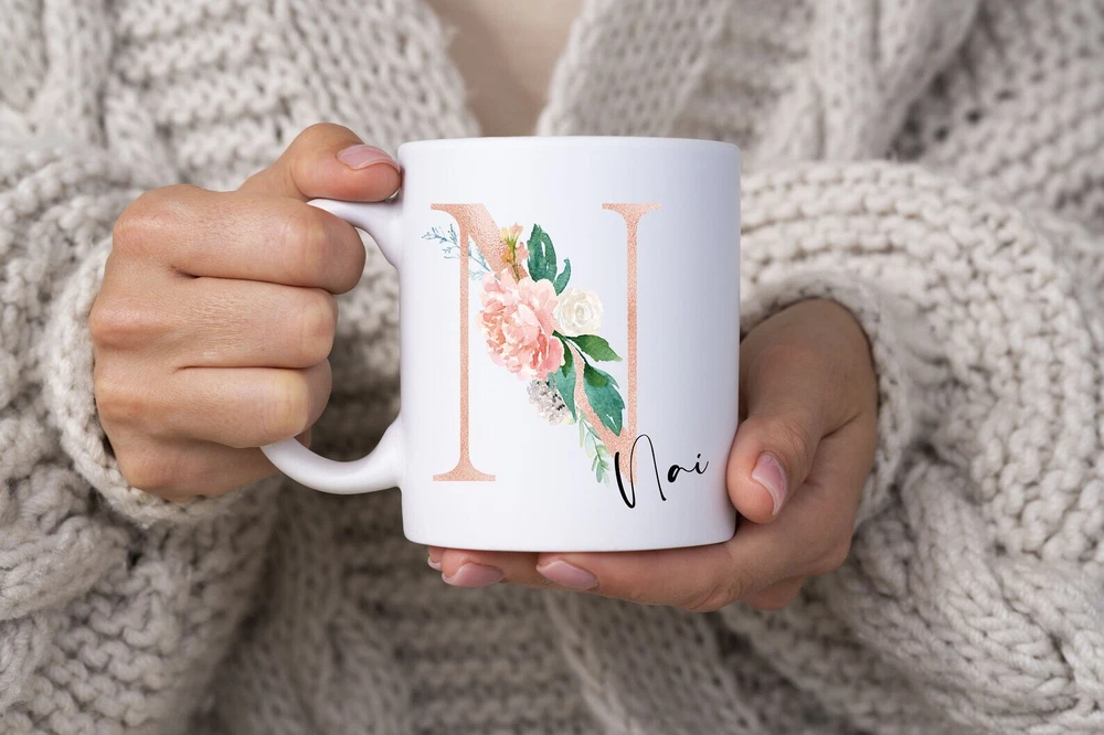 Personalised Mug Mug Name With A Floral Initial Coffee Mug Bridesmaid Gift Product Details.. This high quality 11oz. ceramic white mug has a premium hard coat that provides crisp and vibrant color reproduction sure to last for years. Perfect for all hot & cold beverages. The highest quality printing possible is used. It will never fade no matter how many times you wash it. Material: 100% Ceramic. Print both sides. Dishwasher and Microwave Safe. High Gloss + Premium White Finish. Printed in the U.S.A. Personalized & Custom. We support personalized and custom mug to add custom, when placing an order, you can add notes to the "order note" in shipping address section. Also you can contact us directly via message. Shipping Info. Ready to ship in 1 to 2 business days, All products are made-to-order and proudly printed in the United States. Shipped by USPS and DHL, You will receive your order in 5-7 days. Replace & Refund. All products are defective during shipping broken, chipped will be replaced free of charge. You are not satisfied with the product, we will refund 100% money to you. If any other issues arise, please do not hesitate to message, we would be more than happy to assist you.
