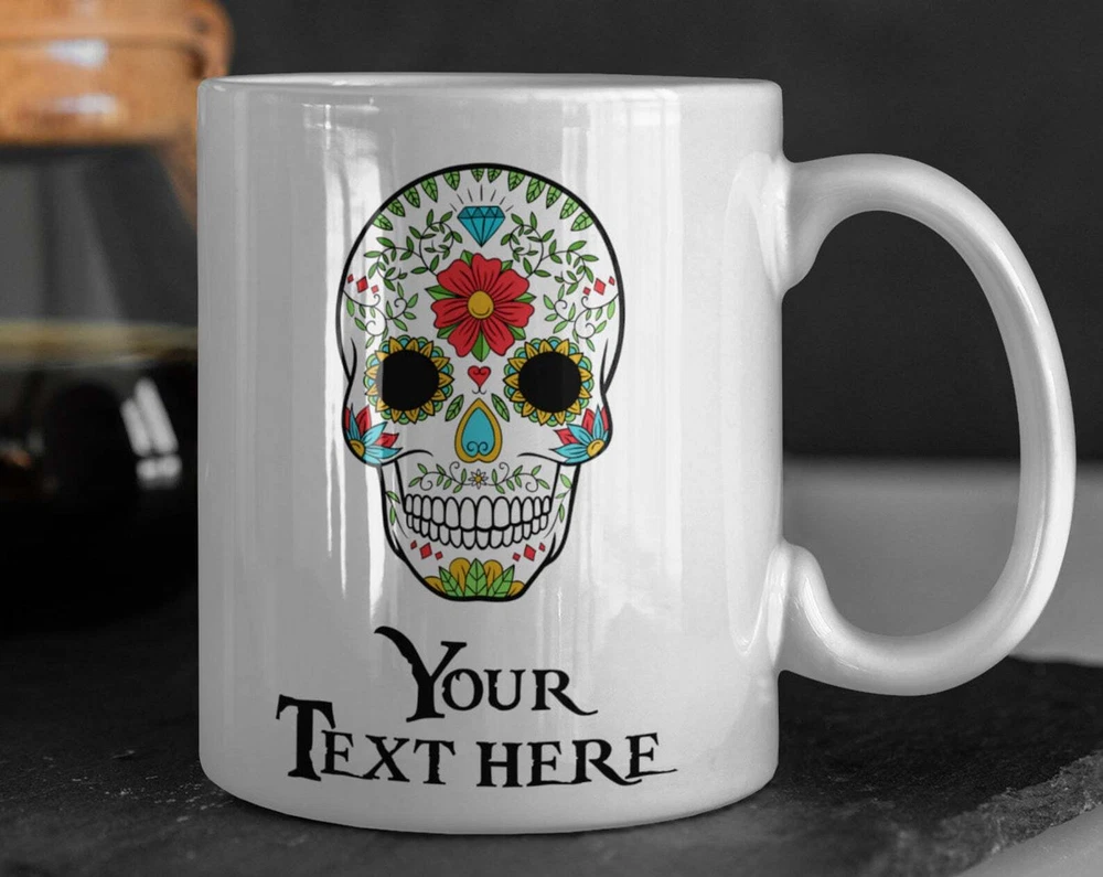 Personalised Mug Sugar Skull Mug Personalised Custom Quote Mug Custom Mug Coffee Product Details.. This high quality 11oz. ceramic white mug has a premium hard coat that provides crisp and vibrant color reproduction sure to last for years. Perfect for all hot & cold beverages. The highest quality printing possible is used. It will never fade no matter how many times you wash it. Material: 100% Ceramic. Print both sides. Dishwasher and Microwave Safe. High Gloss + Premium White Finish. Printed in the U.S.A. Personalized & Custom. We support personalized and custom mug to add custom, when placing an order, you can add notes to the "order note" in shipping address section. Also you can contact us directly via message. Shipping Info. Ready to ship in 1 to 2 business days, All products are made-to-order and proudly printed in the United States. Shipped by USPS and DHL, You will receive your order in 5-7 days. Replace & Refund. All products are defective during shipping broken, chipped will be replaced free of charge. You are not satisfied with the product, we will refund 100% money to you. If any other issues arise, please do not hesitate to message, we would be more than happy to assist you.