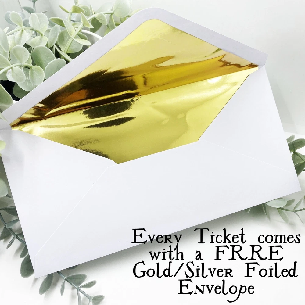 ✨ Personalised Wicked Theatre Gift Ticket – Foiled Surprise Show Reveal & Keepsake 🎭 Looking for a unique and magical way to surprise a loved one with tickets to see Wicked the Musical? This luxury foiled gift ticket is the perfect way to create an unforgettable moment! Beautifully personalised and printed on premium foiled card, it’s a stunning keepsake they can treasure forever. Perfect for birthdays, anniversaries, Christmas, or special surprises, this ticket adds an extra touch of magic to any theatre trip! 🎁 What You Will Receive: Personalised foiled Wicked theatre ticket, printed on luxury 300gsm cardstock with stunning foil details. Free white envelope with gold foil lining, or optional gift box for a ready-to-gift presentation. Ticket size: Approx. 200mm x 90mm — perfect for gifting and display. ✍️ How to Personalise Your Ticket: Please provide the following details in the personalisation box when ordering: Theatre Name & Location (e.g., Apollo Victoria Theatre, London) Date of Show (e.g., Saturday 5th October 2024) Name of Recipient (e.g., Sophie Jones) Gift Message (optional, e.g., Surprise! We're going to see Wicked! Happy Birthday !) ⭐ Each ticket is handmade and personalised, so feel free to add as much detail as you like! If you have a custom idea or want to discuss options, just message me. 🚚 Delivery & Packaging: Carefully packaged in a hard-backed envelope to ensure it arrives safely. Optional gift box available for a luxury finish. ⚠️ Important Note: These are faux tickets for gifting and keepsake purposes only — they do not grant access to any show or venue. 🎉 A perfect gift for musical lovers, Wicked fans, and unforgettable theatre experiences!