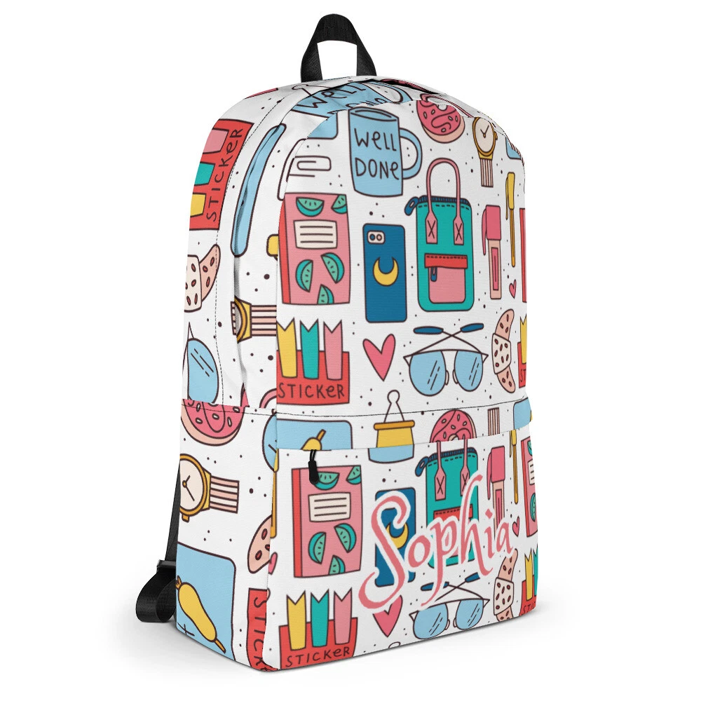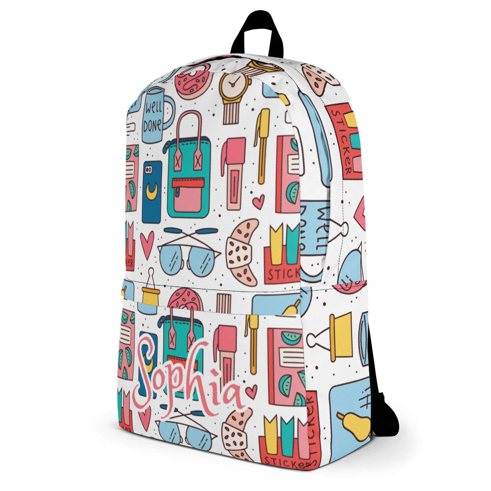 This back to school bag is a limited edition made to suit all ages and genders, It could be a kids backpack, boys backpack and girls backpack, you can use it also as a school backpack, and be sure to get your custom name gift bag before you back to school or maybe some kind of gifts to your best friend. But the most important thing that this backpack is made for you. IMPORTANT INFORMATION After purchase (during checkout) You will have the option to send us the message Please provide us with the name you want to be printed. Are you a school Lover? These Backpacks are perfect for you or your kids. Looking for a unique and special gift for 100 days of school holiday. These Backpack are exactly what you are looking for. This medium size backpack is just what you need for daily use or sports activities! The pockets (including one for your laptop) give plenty of room for all your necessities, while the water-resistant material will protect them from the weather. • Made from 100% polyester • Dimensions: H 16⅞" (42cm), W 12¼" (31cm), D 3⅞" (10cm) • Maximum weight limit: 44lbs (20kg) • Water-resistant material • Large inside pocket with a separate compartment for a 15” laptop, front pocket with a zipper, and a hidden pocket with zipper on the back of the bag • Top zipper has 2 sliders with zipper pullers • Silky lining, piped inside hems, and a soft mesh back • Padded ergonomic bag straps from polyester with plastic strap regulators • Blank product components sourced from China