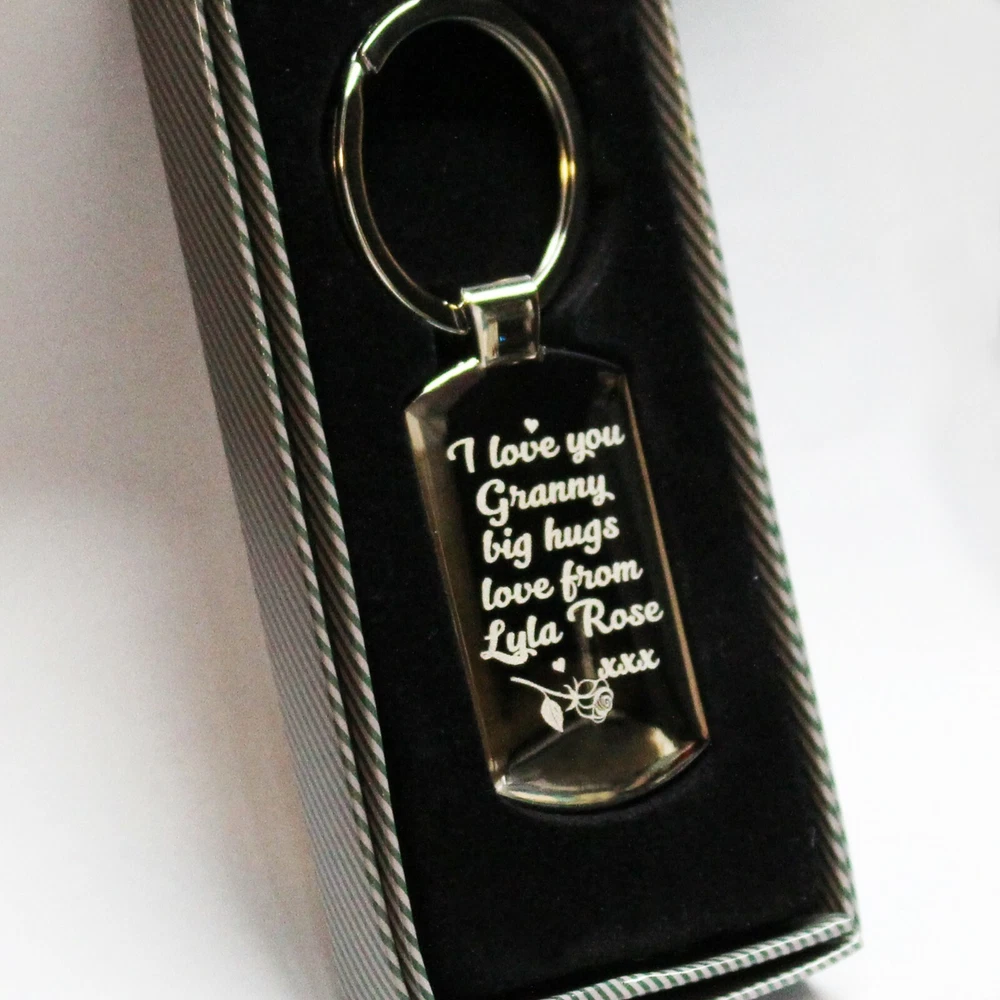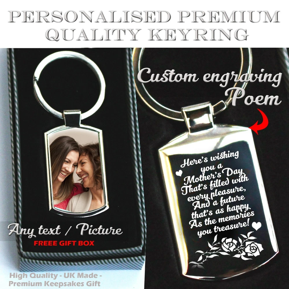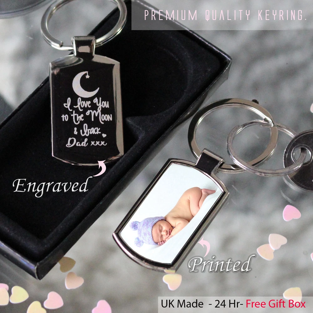 Personalised Gifts : PrintedGiftHouse Shop Other Products How to Order Design Options Personalised Chrome Keyring Photo Printed/Engraved Keepsakes collectable Gift ❤❤ Personalised engraved keyrings -Premium Quality gift at a bargain price. These Keyrings are made with hi quality chrome plated metal . Front of the keyring will be printed with your image , design in HD quality vibrant colour prints , these prints are scratch resistant, water proof and wont fade. You can select the back engraving option ,back of the keyring will be engraved with your art work, text , poem etc. Very unique premium quality product.Long lasting item. Engraved text is more visible in good light with movement and is shown up best when a dark surface is reflected into the keyring. Its not just the text we can engrave please ask ..We are using a high quality precision engraving technology specially designed for jewellers. Steps to Flow Select the shape of the keyring . Select engraving option Yes/ No. Send the images and text to eBay messages , or you can whatsapp to our contact number on the business contact details or you can email to our business email address(on the bottom of the page) but any problems please message us. Wait for the finished product in 1-3 days. If you are happy please leave us a Positive Feedback if not contact us ASAP. Note :Special Designs We can engrave any design art work , Roses , Hearts , Stars , Angels anything you want please ask .... FREE GIFT BOX : Your Key Ring will be sent in a nice little Gift Box . Options to Select ........................................ Keyring Shape We recommend the Rounded Rectangle Keyring Rounded Rectangle : These are the best selling keyrings. They have a lage area for engraving and printing and most populer. Heart Shape : Your image will be printed to the shape of a heart and the engravings too.Small area for engraving and printing.Great for women and lovers. Square : Nice looking shape , again small area for printing and engraving . Good for some images. Rectangle : Again its a rectangle shape and has a small area when comparing with rounded rectangle keyrings.Good for some images. Engraving Option HD engraving -Gives a premium look to the keyring Engraving - Yes We engrave your text , artwork on the back of the keyring. Rounded rectangle keyrings gives more area for engraving so please look at the images before you order you can get a idea.We can engrave any text , Poem , artwork .We have lots of little fancy items that can be engraved to you need so please ask. No- Engraving No engraving on the back.Just the printed keyring. Other Popular Items We have different types items please check our ebay shop How to send the Pictures We need your pictures to personalize them Send the images and text to eBay messages , You can attach them to ebay messages by 5 at a time , or you can whatsapp to our contact number on the business contact details or you can email to our business email address(on the bottom of the page) but any problems please message us. Processing Processing information We wouldn't send you a proof unless you ask for a one to speed up the process. (If a proof needed we will send you a one ASAP and wait for you to reply back) • But in some special occasions we may have to send you a proof just to reduce complications. Postage Postage and delivery Normally post via Royal mail 1st class (Next day delivery but not guaranteed). • Please send required details and images ASAP so that we can finish and deliver your order within 1-3 days(Postage can take up to 1-3 Days) .But we all ways try to post it in the same day . We also have a express delivery option (Special delivery next day guaranteed ) After completed the order After receiving the item we love to hear from you We love to receive your positive feedback after the order is done So please leave us your compliments that will help us to grow and offer you more things in future. Any Problems / Not satisfied ? We are always there if any problems with the order If there is any issues or you don't like the product please, please contact us we will guarantee to resolve your problem ASAP..Remember..Our customer is the KING. How to Send the Pictures : Send the images and text to eBay messages , or you can whatsapp to our contact number on the business contact details or you can email to our business email address(on the bottom of the page) but any problems please message us. Other Items Engraved Keyrings Wallet Cases Any Problems If you have nay problems before or after the order please email us any time .We will always reply to your emails within 24 hrs and guarantee to solve your issue .