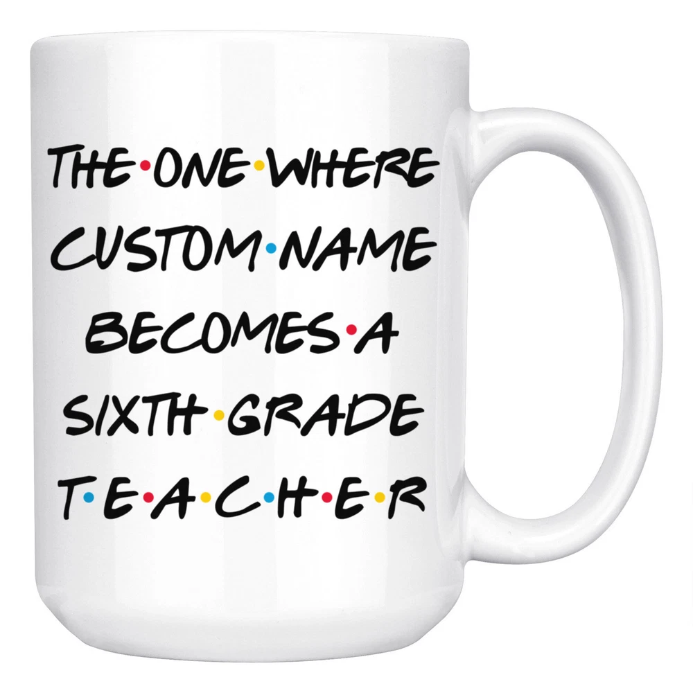 Personalized 6th Grade Teacher Coffee Mug Sixth Grade Teacher Graduation Present Product Details.. This high quality 11oz. ceramic white mug has a premium hard coat that provides crisp and vibrant color reproduction sure to last for years. Perfect for all hot & cold beverages. The highest quality printing possible is used. It will never fade no matter how many times you wash it. Material: 100% Ceramic. Print both sides. Dishwasher and Microwave Safe. High Gloss + Premium White Finish. Printed in the U.S.A. Personalized & Custom. We support personalized and custom mug to add custom, when placing an order, you can add notes to the "order note" in shipping address section. Also you can contact us directly via message. Shipping Info. Ready to ship in 1 to 2 business days, All products are made-to-order and proudly printed in the United States. Shipped by USPS and DHL, You will receive your order in 5-7 days. Replace & Refund. All products are defective during shipping broken, chipped will be replaced free of charge. You are not satisfied with the product, we will refund 100% money to you. If any other issues arise, please do not hesitate to message, we would be more than happy to assist you.