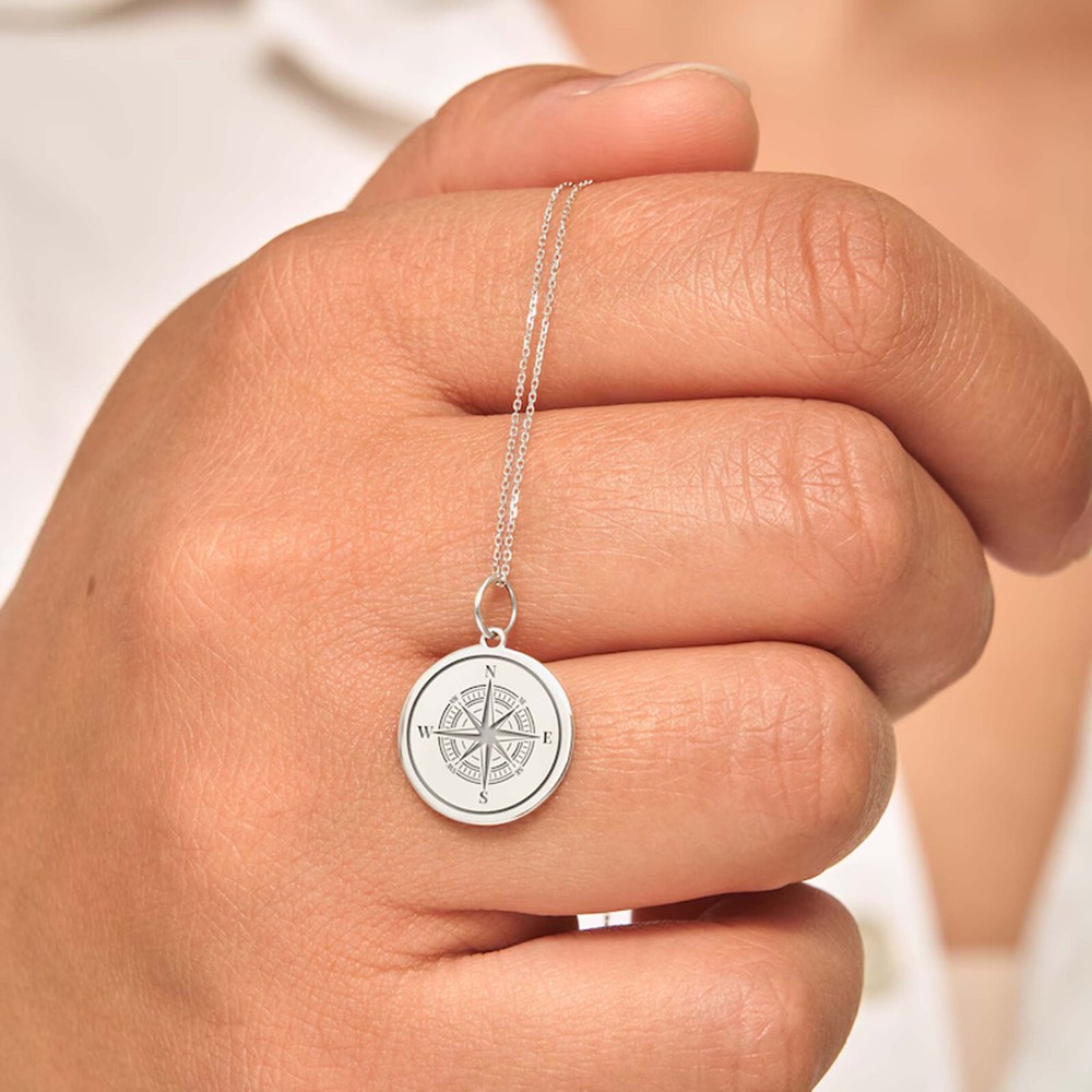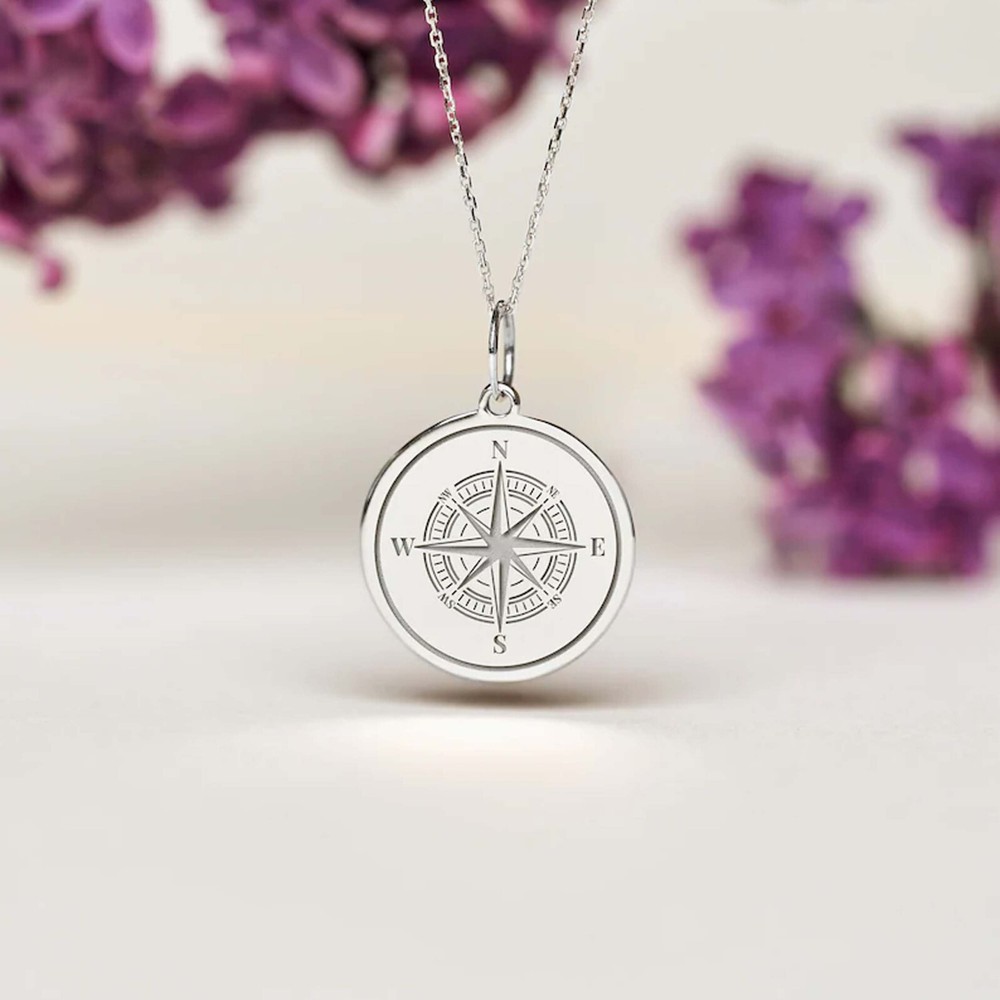 Personalized 925 Sterling Silver Nautical Dainty Compass Pendant for Her