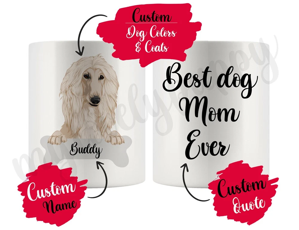 Personalized Afghan Hound Women Gifts Custom Mommy Daddy Mug Mom And Dad Dog Product Details.. This high quality 11oz. ceramic white mug has a premium hard coat that provides crisp and vibrant color reproduction sure to last for years. Perfect for all hot & cold beverages. The highest quality printing possible is used. It will never fade no matter how many times you wash it. Material: 100% Ceramic. Print both sides. Dishwasher and Microwave Safe. High Gloss + Premium White Finish. Printed in the U.S.A. Personalized & Custom. We support personalized and custom mug to add custom, when placing an order, you can add notes to the "order note" in shipping address section. Also you can contact us directly via message. Shipping Info. Ready to ship in 1 to 2 business days, All products are made-to-order and proudly printed in the United States. Shipped by USPS and DHL, You will receive your order in 5-7 days. Replace & Refund. All products are defective during shipping broken, chipped will be replaced free of charge. You are not satisfied with the product, we will refund 100% money to you. If any other issues arise, please do not hesitate to message, we would be more than happy to assist you.