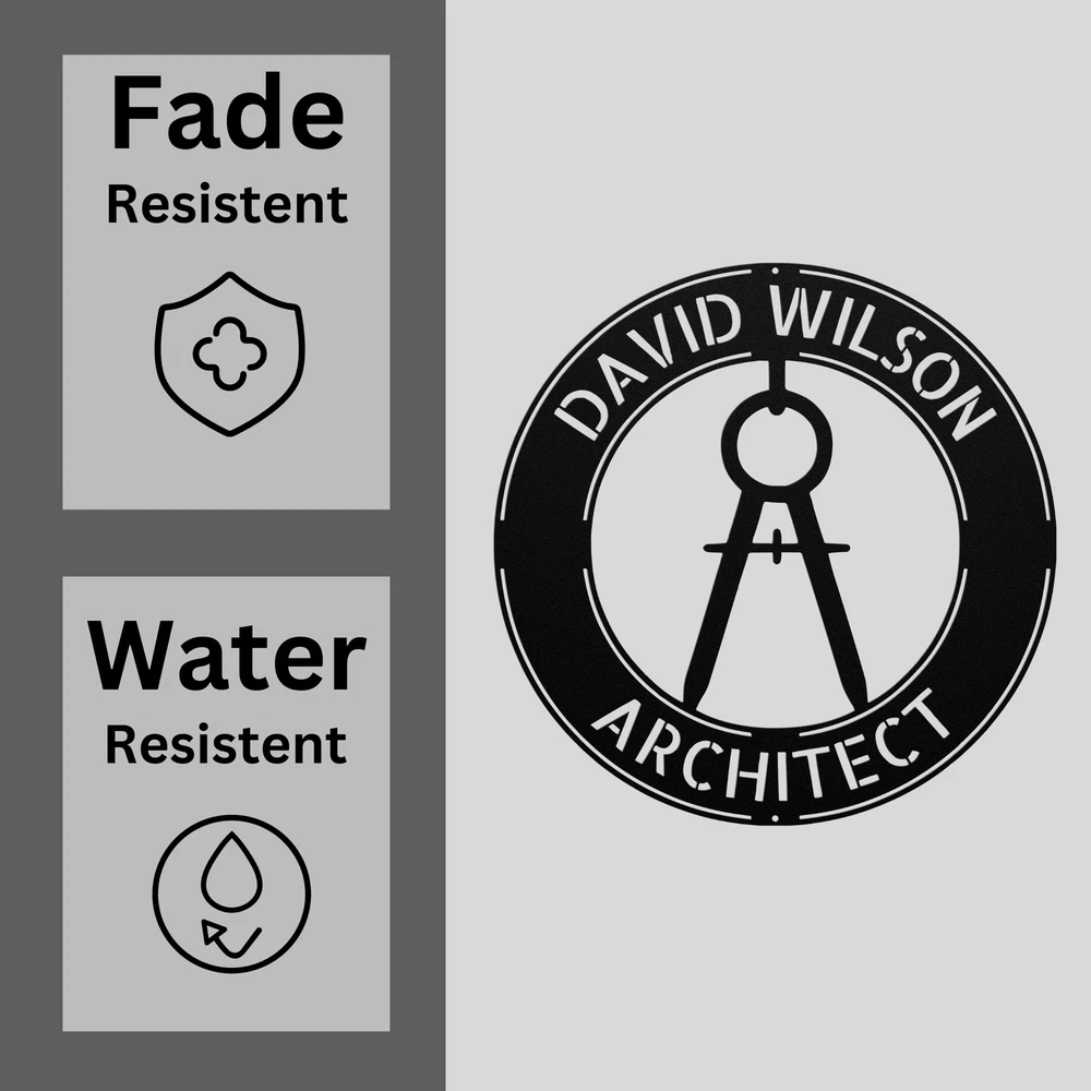 Product Description Personalized Architect Metal Sign Architect Office Decor Gift for Architects Elevate your office or home workspace with this uniquely designed Custom Architect Metal Sign . Made from 16 gauge high-quality metal, this personalized sign is the perfect way to showcase your passion for architecture. Its durable powder-coated finish protects it from dust, weather, and water, making it ideal for both indoor and outdoor use. Customize it with a name, architectural firm, or a special message to create a truly one-of-a-kind piece. This Custom Architect Metal Sign makes a thoughtful gift for an architect’s office, home studio, or as a decorative accent in any design lover’s space. Whether for Christmas, birthdays, or any other special occasion, this sign is a stylish and personal way to celebrate the art of architecture. Key Features: Personalized Design: Customize the sign with a name, firm, or message for a unique touch. 16 Gauge High-Quality Metal: Strong, durable construction ensures longevity. Powder-Coated Finish: Protects against dust, weather, and water for both indoor and outdoor use. Perfect for Architects: Ideal for office decor, home studios, or as a personalized gift. Great Gift Idea: Perfect for architects, designers, or anyone passionate about design and construction; ideal for Christmas, birthdays, or any occasion. Add a personal and professional touch to your space with the Custom Architect Metal Sign —a timeless, functional, and stylish piece of decor. Service and Color Choice Our metal signs are designed to be personalized just for you, making them the perfect addition to any space! The default color for our signs is Black , but we also offer a variety of beautiful options including Copper, Gold, White, and Silver . After placing your order, simply contact us with your preferred color choice, and we'll ensure your sign is exactly how you envision it. Let’s create something special together!