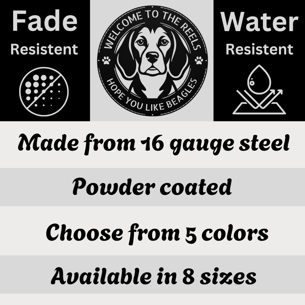 Product Description Celebrate friendliness, curiosity, and charm with this Personalized Beagle Dog Metal Sign , perfect for Beagle owners who want to add a warm, personal touch to their home or yard. This custom family name welcome sign combines personality with style. 🛠️ Premium Metal Craftsmanship Each sign is precision laser-cut from 16-gauge steel and coated with a durable powder finish to resist rust, fading, and outdoor wear. Designed for lasting beauty indoors or outdoors. 🐾 Key Features: Fully Personalized: Add your family name or custom welcome text Beagle Silhouette Design: Playful, curious, and classic profile Heavy-Duty Steel: Strong, weather-resistant, and built to last Versatile Placement: Perfect for porches, fences, doors, or walls Multiple Sizes: Available from 8” to 30” (custom sizes available) Easy to Hang: Pre-drilled holes for fast and secure mounting Finish Options: Black, bronze, silver, white, or custom colors 🎁 Perfect Gift for Beagle Lovers A unique gift for housewarmings, birthdays, holidays, or any dog lover who wants to proudly display their Beagle. 🏡 A Friendly Welcome for Your Home This Custom Beagle Dog Metal Welcome Sign combines durability, charm, and personalization—creating a standout décor piece that celebrates family, warmth, and canine companionship. Service and Color Choice My metal signs are designed to be personalized just for you, making them the perfect addition to any space! The default color is Black , but I also offer a variety of beautiful options including Copper, Gold, White, and Silver . After placing your order, simply contact me with your preferred color choice, and I'll ensure your sign is exactly how you envision it. Let’s create something special together! 📏 How Metal Signs Are Measured Metal signs are measured from the widest point to the opposite widest point of the design. The listed size (8”, 10”, 12”, 18”, 24”, 30”, 36”, etc.) always refers to the longest edge of the artwork, not the height only and not the width only. Because every design has its own shape and proportions, the other dimension (height or width) will adjust automatically . 🛠 Example (30-Inch Size) When selecting a 30-inch sign , the longest side of the design will measure 30 inches . If the design is wider than it is tall: Width = 30 inches Height adjusts proportionally (often around 18–22 inches depending on the design) If the design is taller than it is wide: Height = 30 inches Width adjusts proportionally This ensures the sign keeps its correct proportions and the original shape, no matter which size is selected. 🎨 Custom Designs & Logos Welcome Have a special idea in mind? I can make it happen! Whether you need a business logo , family emblem , pet silhouette , or a one-of-a-kind design , I can create it from scratch and turn it into a high-quality metal sign. You can send your concept, sketch, or photo, and I’ll handle the custom design, editing, and production from start to finish. Your vision becomes real metal artwork made exactly the way you want it. ✨ Custom Any Design: If you have a special idea in mind, I can turn it into a metal sign, just message me! 📦 Ordering & Gift-Ready Each sign is crafted to order with great care and attention to detail. Your piece arrives ready to hang , making it easy to display or give as a thoughtful gift. Whether it's for your home or for someone special, every sign is made to impress and last for years. 💖 Your support means the world to me and my family. Thank you for helping keep this small art business growing. 🚚 Production & Shipping Every sign is made to order with a fast turnaround time. Production Time: 1–2 business days Free Shipping: UPS Ground (estimated 2–5 business days ) Expedited Shipping: FedEx 2-Day Delivery available at checkout Shipping Location: All orders ship from Indiana, USA Each order is packed securely to ensure your metal sign arrives safely and ready to display.