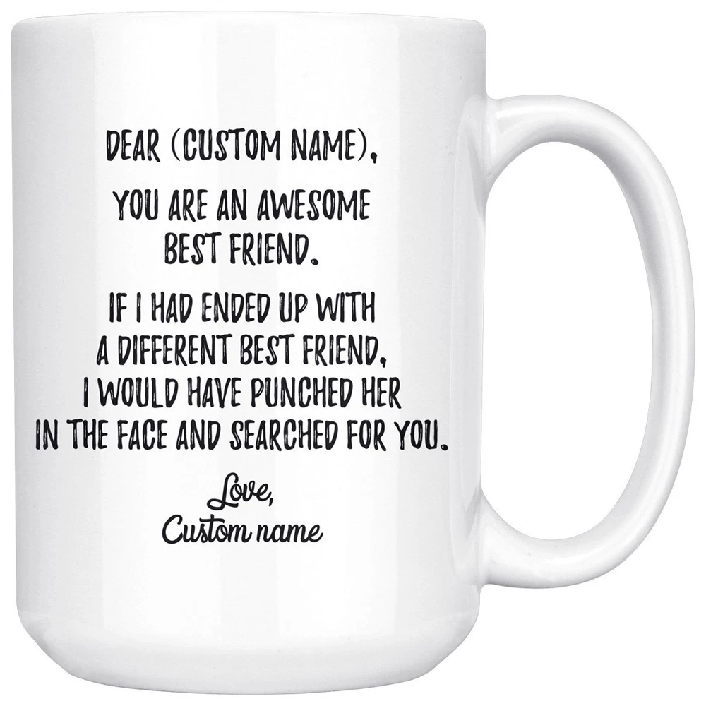 Personalized Best Friend Mug Best Friends Forever Bestie Gift Bff Coffee Mug Product Details.. This high quality 11oz. ceramic white mug has a premium hard coat that provides crisp and vibrant color reproduction sure to last for years. Perfect for all hot & cold beverages. The highest quality printing possible is used. It will never fade no matter how many times you wash it. Material: 100% Ceramic. Print both sides. Dishwasher and Microwave Safe. High Gloss + Premium White Finish. Printed in the U.S.A. Personalized & Custom. We support personalized and custom mug to add custom, when placing an order, you can add notes to the "order note" in shipping address section. Also you can contact us directly via message. Shipping Info. Ready to ship in 1 to 2 business days, All products are made-to-order and proudly printed in the United States. Shipped by USPS and DHL, You will receive your order in 5-7 days. Replace & Refund. All products are defective during shipping broken, chipped will be replaced free of charge. You are not satisfied with the product, we will refund 100% money to you. If any other issues arise, please do not hesitate to message, we would be more than happy to assist you.