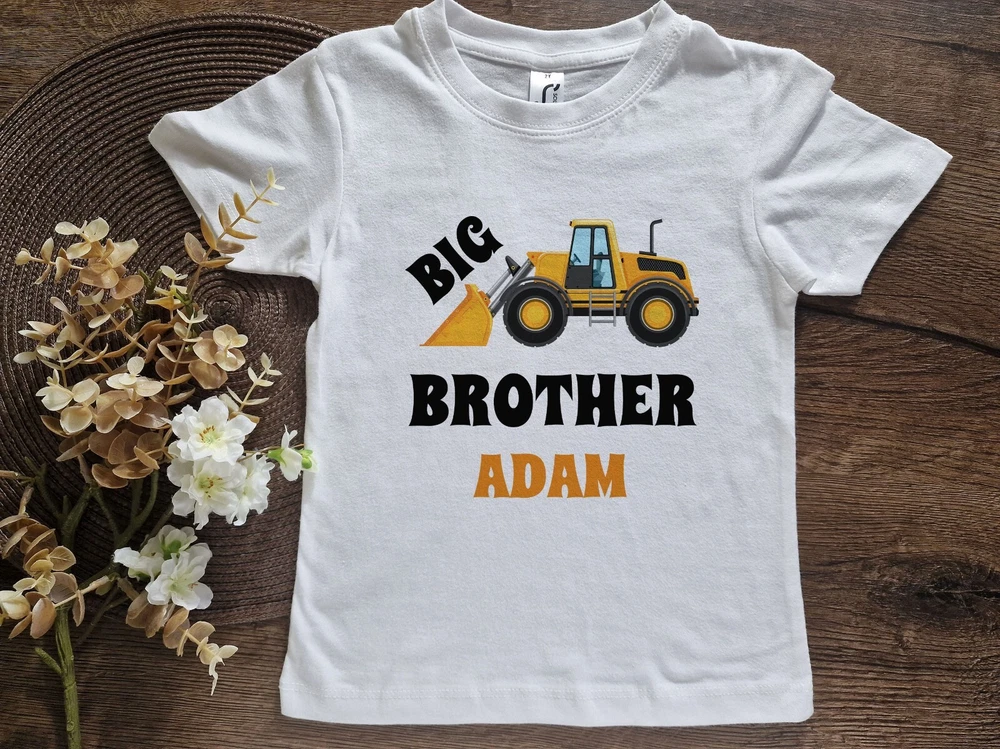 Prepare your little one for the big transition with our charming Big Brother T-Shirt! Crafted from 100% ultra-soft cotton, this shirt ensures comfort and style as your little guy embraces his role as a big brother. Personalize it with your kid's name or expecting baby arrival date to add a unique touch. With its adorable design, this shirt sparks excitement and anticipation for the new addition to the family. It's not just a shirt; it's a statement of pride and readiness for the adventure ahead. Order now and equip your little one for his journey as a big brother. Let him proudly declare to the world, "I'm going to be a big brother!" HOW TO ORDER 1. Choose a t-shirt size 2. Write in personalization box text which you want to see on the T-shirt (any language). 3. ADD TO CART and proceed to checkout SIZE Please be sure to review and read the sizing charts and descriptions before ordering! We want to make sure you get the best fit as our personalized items cannot be returned due to sizing errors! We recommend to find yours an old T-shirts and measure them: - Lay a t-shirt on a flat surface. - Measure the chest area, just under the armpit from side to side find the shirt's width. - Then measure the length from top of the shoulder to the bottom of the shirt to find the shirt's length. - After taking your measurements, match them to the closest sizes in the chart. (Sizing chart can be found in the listing photos). T-SHIRT DESCRIPTION: - 100% semi-combed Ringspun cotton - White color - We use the latest direct-to-garment (DTG) printing technology to offer a variety of printable garments and design color options at an affordable price. This means that the ink is applied directly to the garment of your choice, making the designs super soft and durable. No peeling or cracking will ever occur since the designs become a part of the fabric. CARE INSTRUCTIONS: - Recommended to wash in 30°C water, inside out. Do not use bleach. Visit my store Mill of colors to see more Big brother/sister T-shirt designs.