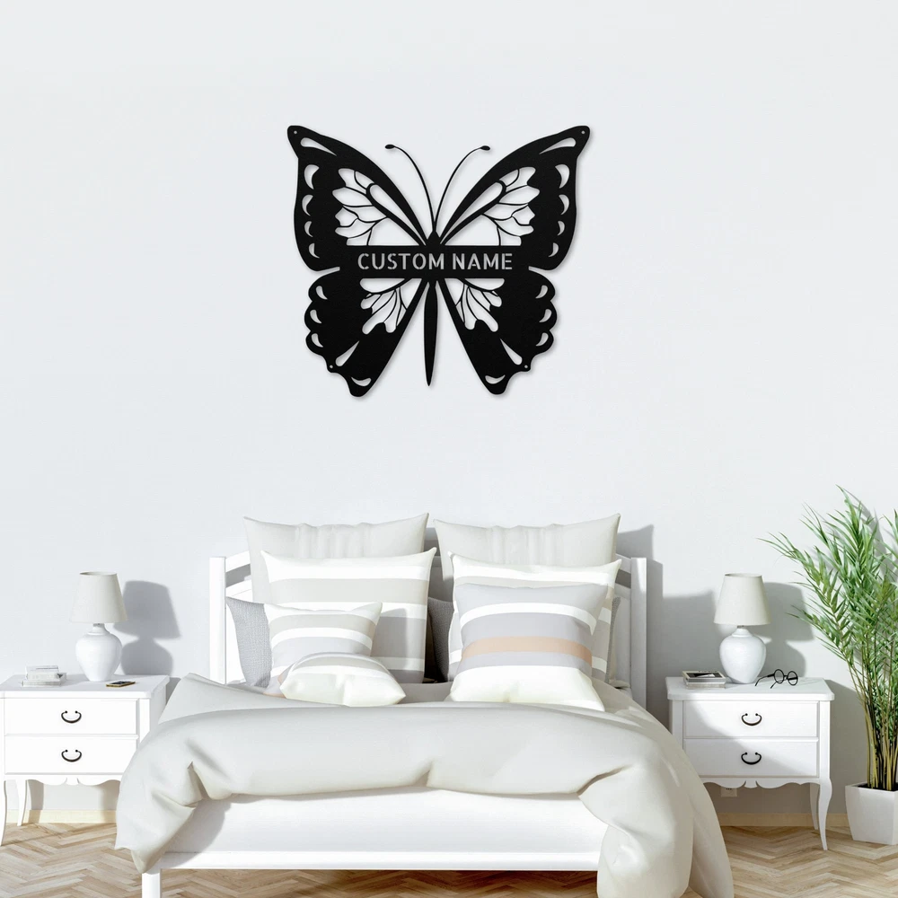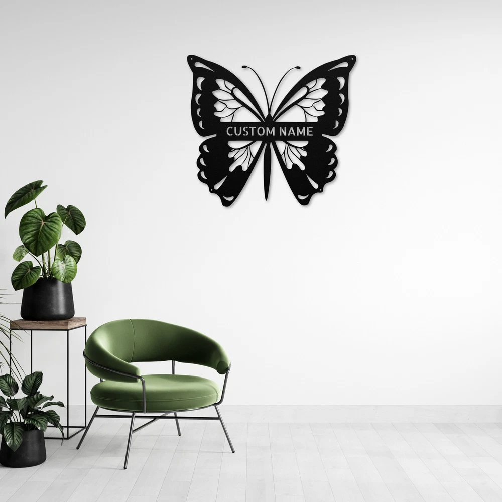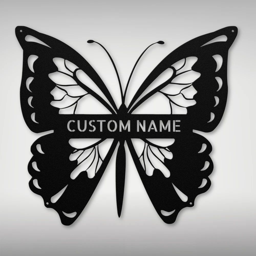 Product Description Personalized Butterfly Metal Sign Custom Decor Gift for Home Office Unique Art Transform your space with our Personalized Butterfly Metal Sign ! This beautiful sign adds a touch of elegance and charm, making it a perfect addition to your home or office decor. Made from 16 gauge high-quality metal , this sign is built to last. The powder coating ensures it is dust, weather, and water-resistant, making it suitable for both indoor and outdoor use. Key features include: Customizable Design: Personalize it with your name or a special message for a unique touch. Durable Material: Crafted from sturdy metal for long-lasting beauty and resilience. Versatile Decor: Ideal for home, office, or as a thoughtful gift for Christmas, birthdays, or any occasion. Elegant Look: The butterfly design brings a sense of grace and whimsy to any setting. Celebrate your individuality with the Personalized Butterfly Metal Sign . It’s more than just decor; it’s a reflection of your personality and style! Service and Color Choice Our metal signs are designed to be personalized just for you, making them the perfect addition to any space! The default color for our signs is Black , but we also offer a variety of beautiful options including Copper, Gold, White, and Silver . After placing your order, simply contact us with your preferred color choice, and we'll ensure your sign is exactly how you envision it. Let’s create something special together!