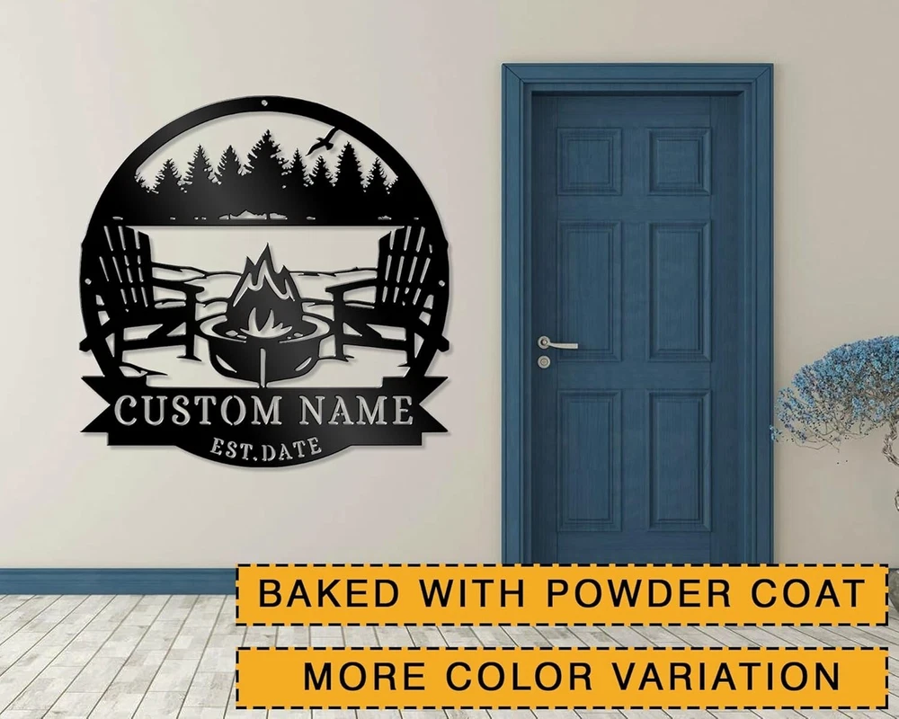 Personalized Campfire Metal Sign, Family Name Sign, Campfire Monogram Sign