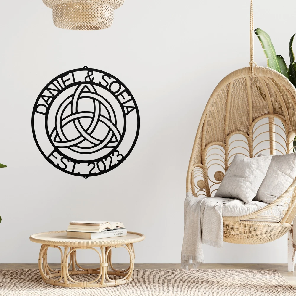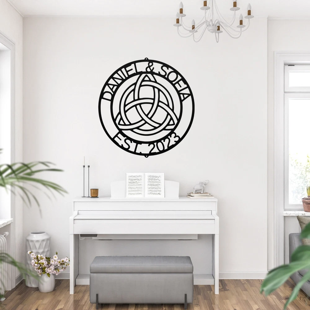 Product Description Personalized Celtic Metal Sign Custom Wall Art Gift for Home Office Decor Enhance your space with our Personalized Celtic Metal Sign . This beautifully crafted sign is perfect for those who appreciate Celtic designs and want to add a unique touch to their decor. Made from 16 gauge high-quality metal , this sign is durable and built to last. With a powder coating , it is dust, weather, and water-resistant , making it suitable for both indoor and outdoor use. Key features include: Customizable Design: Personalize your sign with names, dates, or special messages for a unique touch. Durable Quality: Made from sturdy metal to ensure longevity and resilience. Perfect Gift: Ideal for Christmas, birthdays, or any special occasion for family and friends. Versatile Decor: Great for enhancing your home, office, or garden, adding charm and character. Celebrate your love for Celtic culture with the Personalized Celtic Metal Sign . It’s a meaningful way to personalize your space while enjoying a timeless design! Service and Color Choice Our metal signs are designed to be personalized just for you, making them the perfect addition to any space! The default color for our signs is Black , but we also offer a variety of beautiful options including Copper, Gold, White, and Silver . After placing your order, simply contact us with your preferred color choice, and we'll ensure your sign is exactly how you envision it. Let’s create something special together!