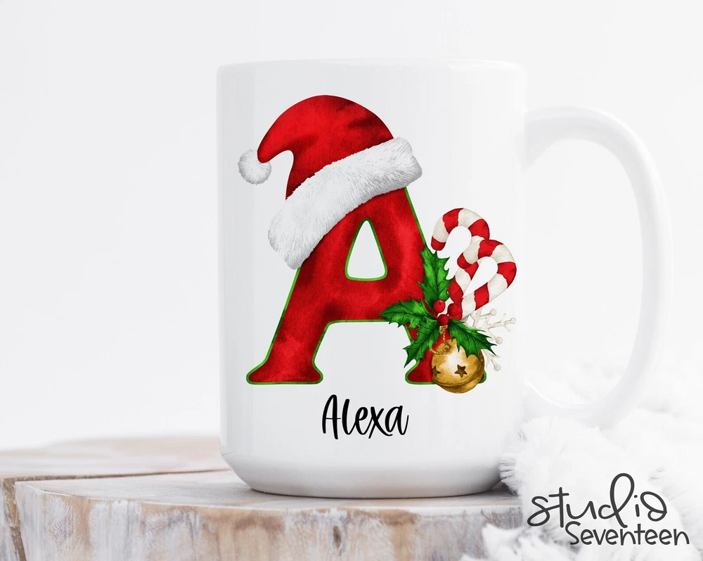 Personalized Christmas Monogram Mug Customizable Coffee Cup Coffee Bar Decor Christmas Gift Idea Mug With Initial Secret Santa Gift Product Details.. This high quality 11oz. ceramic white mug has a premium hard coat that provides crisp and vibrant color reproduction sure to last for years. Perfect for all hot & cold beverages. The highest quality printing possible is used. It will never fade no matter how many times you wash it. Material: 100% Ceramic. Print both sides. Dishwasher and Microwave Safe. High Gloss + Premium White Finish. Printed in the U.S.A. Personalized & Custom. We support personalized and custom mug to add custom, when placing an order, you can add notes to the "order note" in shipping address section. Also you can contact us directly via message. Shipping Info. Ready to ship in 1 to 2 business days, All products are made-to-order and proudly printed in the United States. Shipped by USPS and DHL, You will receive your order in 5-7 days. Replace & Refund. All products are defective during shipping broken, chipped will be replaced free of charge. You are not satisfied with the product, we will refund 100% money to you. If any other issues arise, please do not hesitate to message, we would be more than happy to assist you.