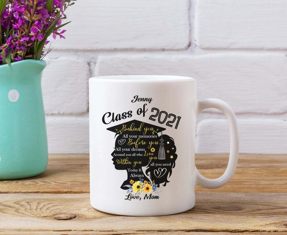 Personalized Class Of 2021 Mug Graduation Gift Senior 2021 Daughter Gift From Product Details.. This high quality 11oz. ceramic white mug has a premium hard coat that provides crisp and vibrant color reproduction sure to last for years. Perfect for all hot & cold beverages. The highest quality printing possible is used. It will never fade no matter how many times you wash it. Material: 100% Ceramic. Print both sides. Dishwasher and Microwave Safe. High Gloss + Premium White Finish. Printed in the U.S.A. Personalized & Custom. We support personalized and custom mug to add custom, when placing an order, you can add notes to the "order note" in shipping address section. Also you can contact us directly via message. Shipping Info. Ready to ship in 1 to 2 business days, All products are made-to-order and proudly printed in the United States. Shipped by USPS and DHL, You will receive your order in 5-7 days. Replace & Refund. All products are defective during shipping broken, chipped will be replaced free of charge. You are not satisfied with the product, we will refund 100% money to you. If any other issues arise, please do not hesitate to message, we would be more than happy to assist you.
