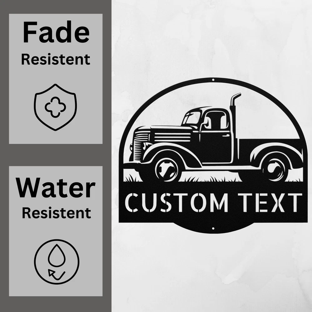 Product Description Personalized Country Truck Metal Sign Custom Rustic Decor Unique Gift for Him Add a touch of rustic charm to your space with the Personalized Country Truck Metal Sign ! This sign is perfect for anyone who loves the country lifestyle or classic trucks. Crafted from 16 gauge high-quality metal , this sign is designed to stand the test of time. With a powder coating , it is dust, weather, and water-resistant, making it suitable for both indoor and outdoor use. Key features include: Customizable Design: Personalize it with names or a special message. Durable Construction: Made from high-quality metal for long-lasting enjoyment. Perfect Gift: Great for Christmas, birthdays, or any special occasion. Charming Decor: Ideal for home, garage, or office decoration. The Personalized Country Truck Metal Sign is more than just a sign; it’s a heartfelt gift that captures the essence of country living. Celebrate the memories and the love for classic trucks with this beautiful piece of decor! Service and Color Choice Our metal signs are designed to be personalized just for you, making them the perfect addition to any space! The default color for our signs is Black , but we also offer a variety of beautiful options including Copper, Gold, White, and Silver . After placing your order, simply contact us with your preferred color choice, and we'll ensure your sign is exactly how you envision it. Let’s create something special together!
