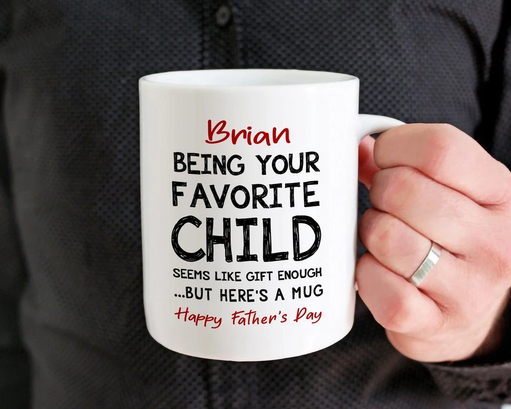 Personalized Dad Gift From Child Mug Dad Birthday Gift Mug Custom Funny Dad Product Details.. This high quality 11oz. ceramic white mug has a premium hard coat that provides crisp and vibrant color reproduction sure to last for years. Perfect for all hot & cold beverages. The highest quality printing possible is used. It will never fade no matter how many times you wash it. Material: 100% Ceramic. Print both sides. Dishwasher and Microwave Safe. High Gloss + Premium White Finish. Printed in the U.S.A. Personalized & Custom. We support personalized and custom mug to add custom, when placing an order, you can add notes to the "order note" in shipping address section. Also you can contact us directly via message. Shipping Info. Ready to ship in 1 to 2 business days, All products are made-to-order and proudly printed in the United States. Shipped by USPS and DHL, You will receive your order in 5-7 days. Replace & Refund. All products are defective during shipping broken, chipped will be replaced free of charge. You are not satisfied with the product, we will refund 100% money to you. If any other issues arise, please do not hesitate to message, we would be more than happy to assist you.