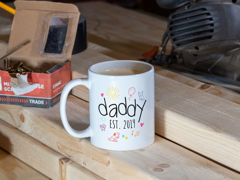 Personalized Daddy Est Year Established Mug. Unique Custom Fathers Day Gift For Product Details.. This high quality 11oz. ceramic white mug has a premium hard coat that provides crisp and vibrant color reproduction sure to last for years. Perfect for all hot & cold beverages. The highest quality printing possible is used. It will never fade no matter how many times you wash it. Material: 100% Ceramic. Print both sides. Dishwasher and Microwave Safe. High Gloss + Premium White Finish. Printed in the U.S.A. Personalized & Custom. We support personalized and custom mug to add custom, when placing an order, you can add notes to the "order note" in shipping address section. Also you can contact us directly via message. Shipping Info. Ready to ship in 1 to 2 business days, All products are made-to-order and proudly printed in the United States. Shipped by USPS and DHL, You will receive your order in 5-7 days. Replace & Refund. All products are defective during shipping broken, chipped will be replaced free of charge. You are not satisfied with the product, we will refund 100% money to you. If any other issues arise, please do not hesitate to message, we would be more than happy to assist you.