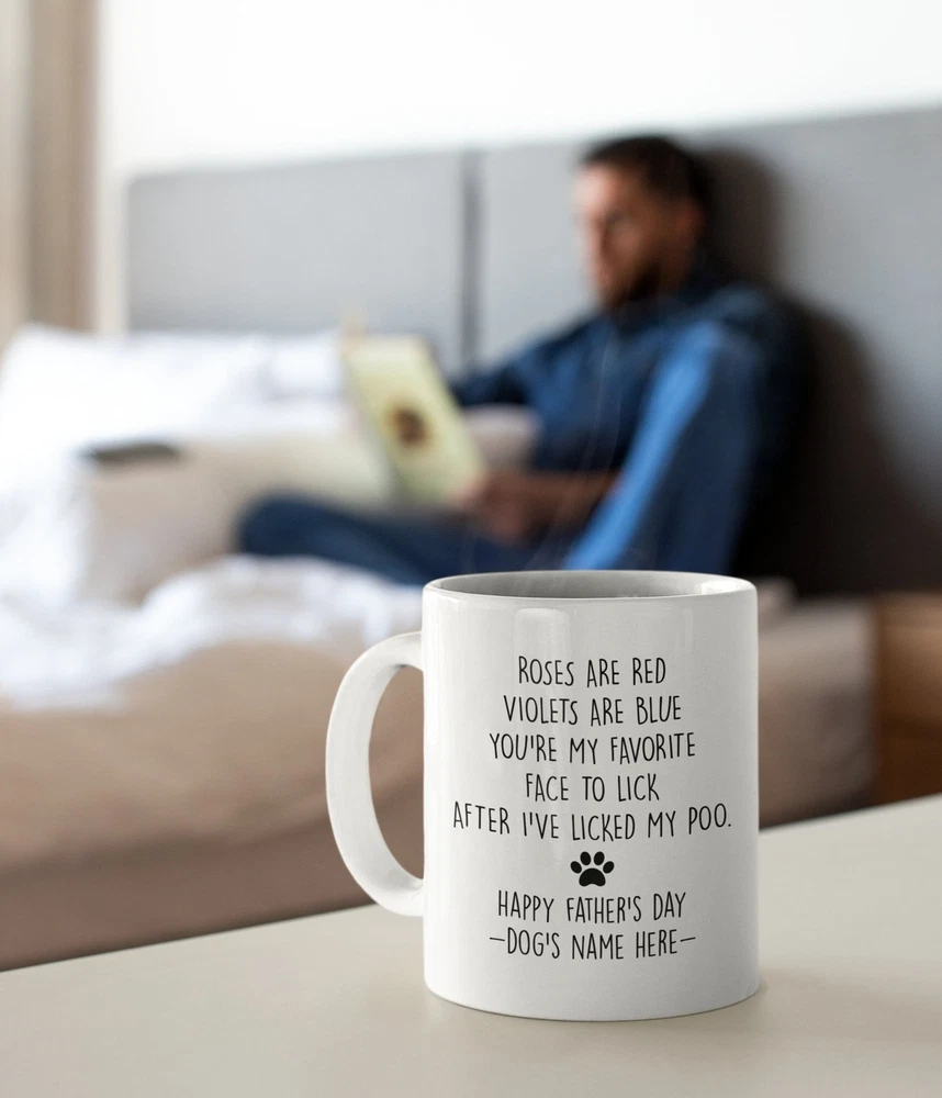 Personalized Dog Dad Coffee Mug Funny Gift From Dog To Dad Pet Father Gift Ideas Product Details.. This high quality 11oz. ceramic white mug has a premium hard coat that provides crisp and vibrant color reproduction sure to last for years. Perfect for all hot & cold beverages. The highest quality printing possible is used. It will never fade no matter how many times you wash it. Material: 100% Ceramic. Print both sides. Dishwasher and Microwave Safe. High Gloss + Premium White Finish. Printed in the U.S.A. Personalized & Custom. We support personalized and custom mug to add custom, when placing an order, you can add notes to the "order note" in shipping address section. Also you can contact us directly via message. Shipping Info. Ready to ship in 1 to 2 business days, All products are made-to-order and proudly printed in the United States. Shipped by USPS and DHL, You will receive your order in 5-7 days. Replace & Refund. All products are defective during shipping broken, chipped will be replaced free of charge. You are not satisfied with the product, we will refund 100% money to you. If any other issues arise, please do not hesitate to message, we would be more than happy to assist you.