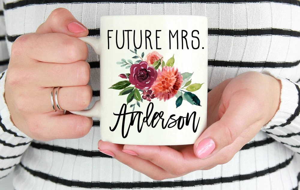 Personalized Engagement Gift For Bride Mug Future Mrs Mug Bridal Shower Gift Product Details.. This high quality 11oz. ceramic white mug has a premium hard coat that provides crisp and vibrant color reproduction sure to last for years. Perfect for all hot & cold beverages. The highest quality printing possible is used. It will never fade no matter how many times you wash it. Material: 100% Ceramic. Print both sides. Dishwasher and Microwave Safe. High Gloss + Premium White Finish. Printed in the U.S.A. Personalized & Custom. We support personalized and custom mug to add custom, when placing an order, you can add notes to the "order note" in shipping address section. Also you can contact us directly via message. Shipping Info. Ready to ship in 1 to 2 business days, All products are made-to-order and proudly printed in the United States. Shipped by USPS and DHL, You will receive your order in 5-7 days. Replace & Refund. All products are defective during shipping broken, chipped will be replaced free of charge. You are not satisfied with the product, we will refund 100% money to you. If any other issues arise, please do not hesitate to message, we would be more than happy to assist you.