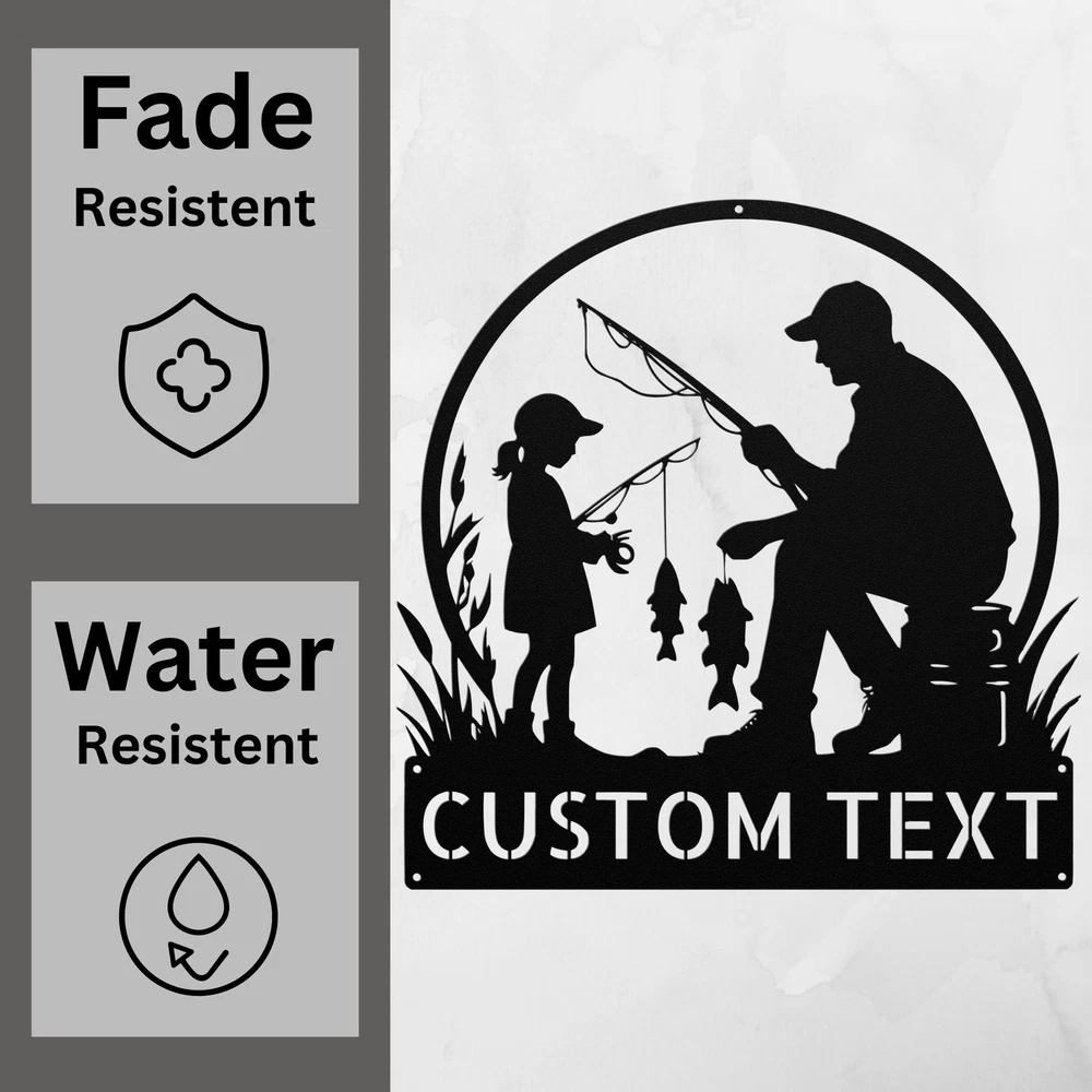Product Description Personalized Father and Daughter Fishing Metal Sign Custom Fishing Lovers Gift Celebrate the special bond between a father and daughter with our charming Personalized Father and Daughter Fishing Metal Sign . This delightful sign is perfect for any fishing enthusiast and makes a great addition to your home or office. Crafted from 16 gauge high-quality metal , this sign is designed for durability. The powder coating provides excellent protection against dust, weather, and water, ensuring it stays looking great no matter where you display it. Key features include: Customizable Design: Personalize it with names, a special date, or a meaningful quote to make it unique. Built to Last: Made from sturdy metal to withstand the elements and time. Perfect Gift Idea: An ideal present for Christmas, birthdays, or any special occasion for fathers and daughters who love fishing. Versatile Decor: Perfect for a cabin, home, or as a thoughtful reminder of cherished memories. The Personalized Father and Daughter Fishing Metal Sign is not just a decoration; it’s a celebration of unforgettable moments spent together. Order yours today and create a lasting keepsake! Service and Color Choice Our metal signs are designed to be personalized just for you, making them the perfect addition to any space! The default color for our signs is Black , but we also offer a variety of beautiful options including Copper, Gold, White, and Silver . After placing your order, simply contact us with your preferred color choice, and we'll ensure your sign is exactly how you envision it. Let’s create something special together!