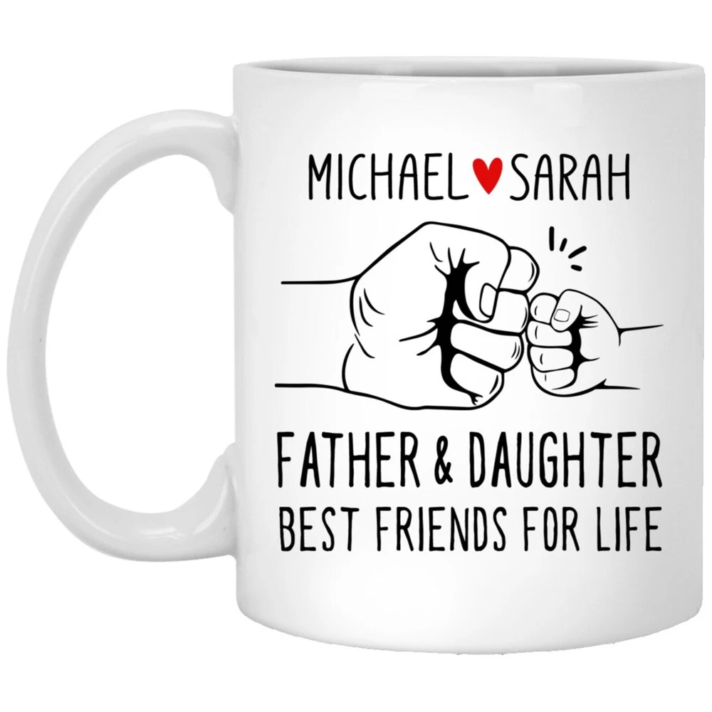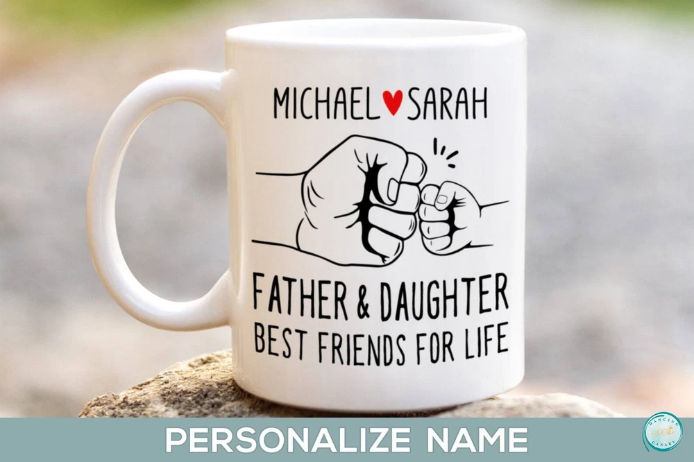 Personalized Fathers Day Gift From Daughter Fist Bump Mug Dad Husband Or Daughter Birthday Or Christmas Present New Father Gift Product Details.. This high quality 11oz. ceramic white mug has a premium hard coat that provides crisp and vibrant color reproduction sure to last for years. Perfect for all hot & cold beverages. The highest quality printing possible is used. It will never fade no matter how many times you wash it. Material: 100% Ceramic. Print both sides. Dishwasher and Microwave Safe. High Gloss + Premium White Finish. Printed in the U.S.A. Personalized & Custom. We support personalized and custom mug to add custom, when placing an order, you can add notes to the "order note" in shipping address section. Also you can contact us directly via message. Shipping Info. Ready to ship in 1 to 2 business days, All products are made-to-order and proudly printed in the United States. Shipped by USPS and DHL, You will receive your order in 5-7 days. Replace & Refund. All products are defective during shipping broken, chipped will be replaced free of charge. You are not satisfied with the product, we will refund 100% money to you. If any other issues arise, please do not hesitate to message, we would be more than happy to assist you.
